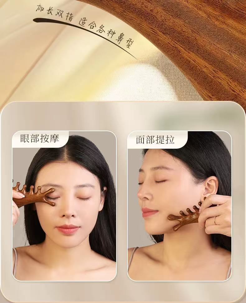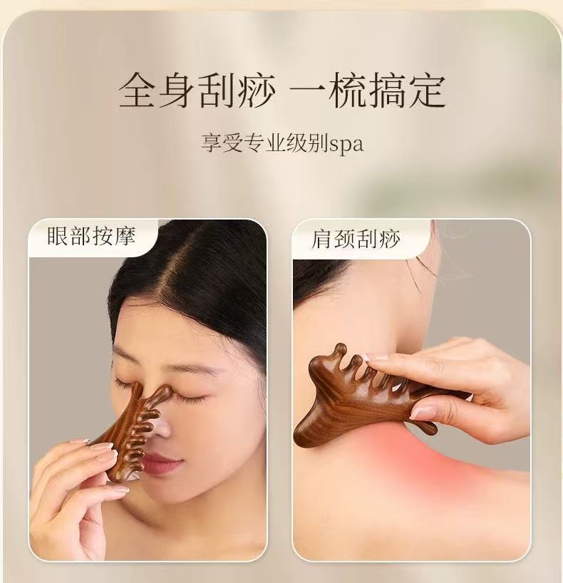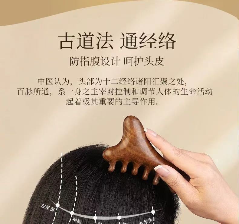 多功能头皮按摩梳子头部脱发头疗刮痧疏通经络神器脸部眼部檀木梳