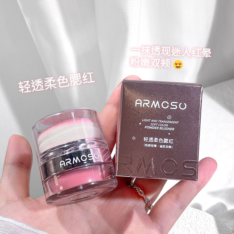 アーモス ライトで透明感のあるソフトカラーのチークパウダー 立体的な輪郭 低彩度で発色しやすい 活力少女の若々しく繊細なルージュ