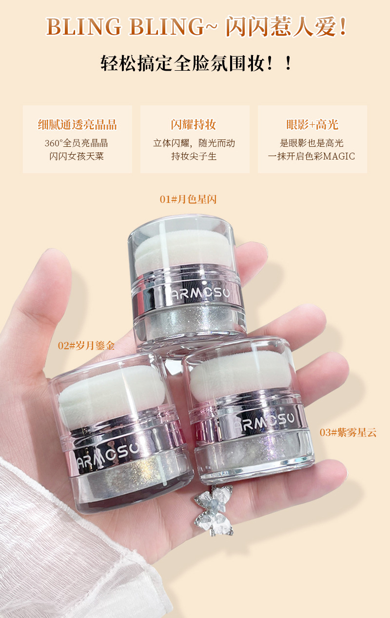アーモス スターシャドウ グリッターハイライティングパウダー 顔を明るくし、立体的な自然な長持ちするボディデリケートパールグリッターパウダー