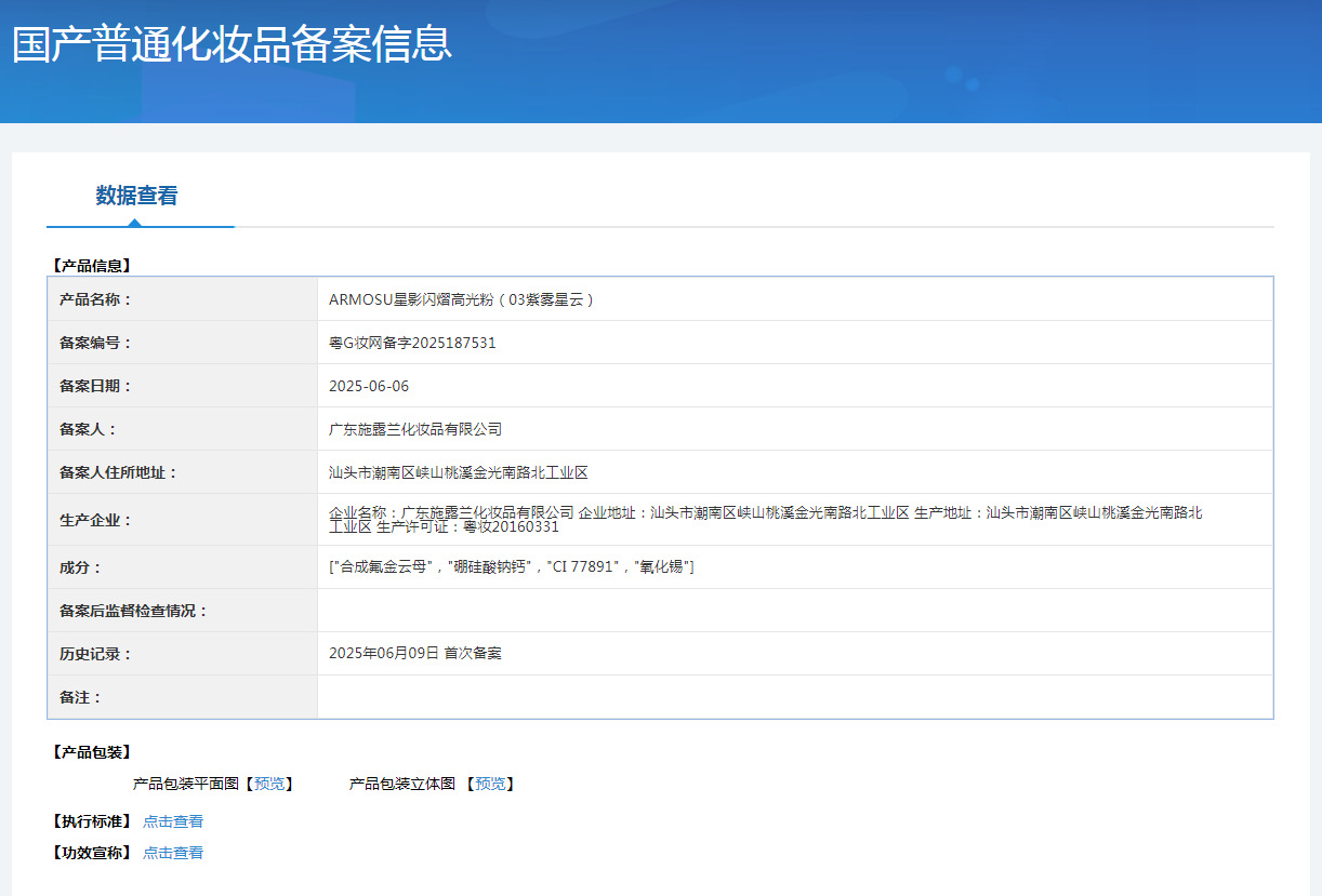 非特殊化粧品登録証明書番号 広東Gメイクアップネットワーク準備番号 2025187528