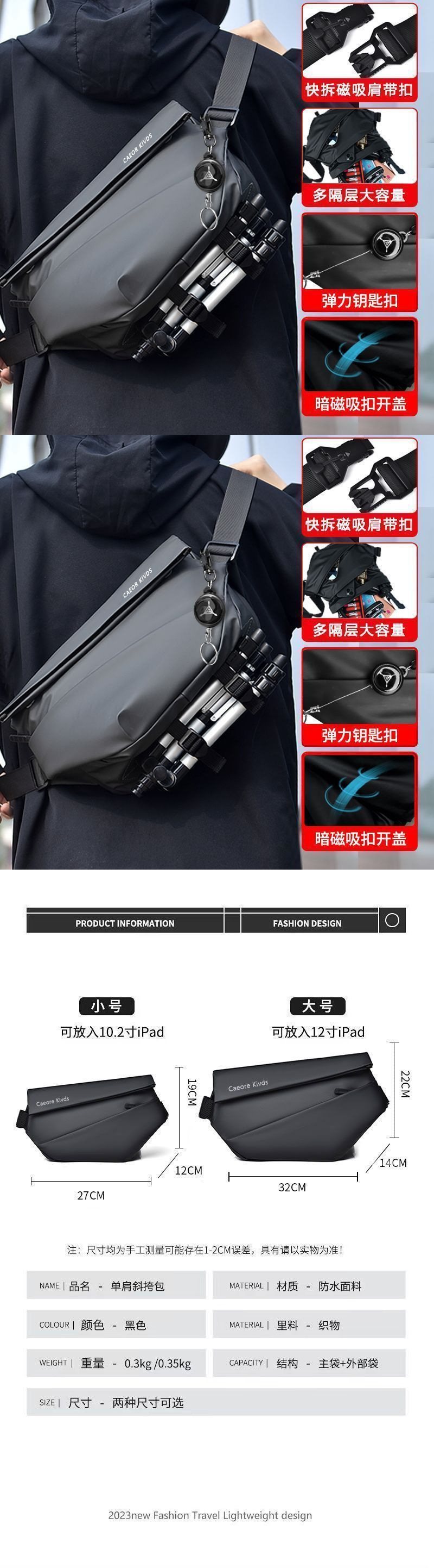 トレンドの新作アウトドア防水大容量斜め掛けバッグメンズチェストバッグおしゃれシンプルショルダーバッグipad多機能