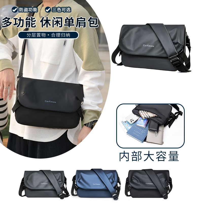 新款男士简约斜挎包时尚单肩男包大容量防泼水邮差包商务公文包