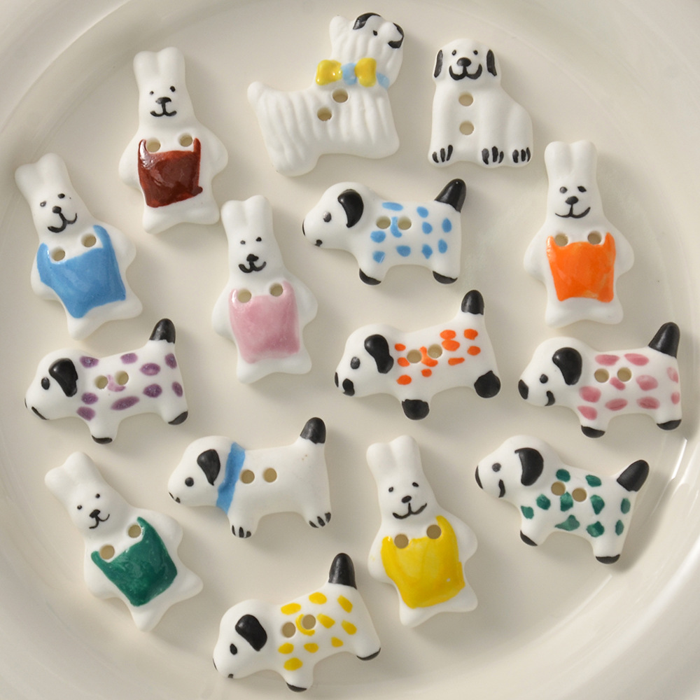 卡通斑点小狗动物陶瓷纽扣 手工diy手串珠隔珠吊坠服饰品材料配件