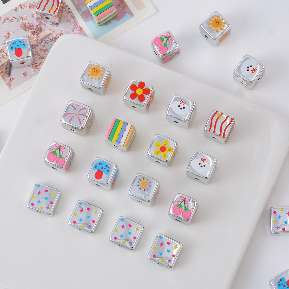 可爱卡通银色印花方块花朵波点散珠 diy手工串珠手机链材料配件