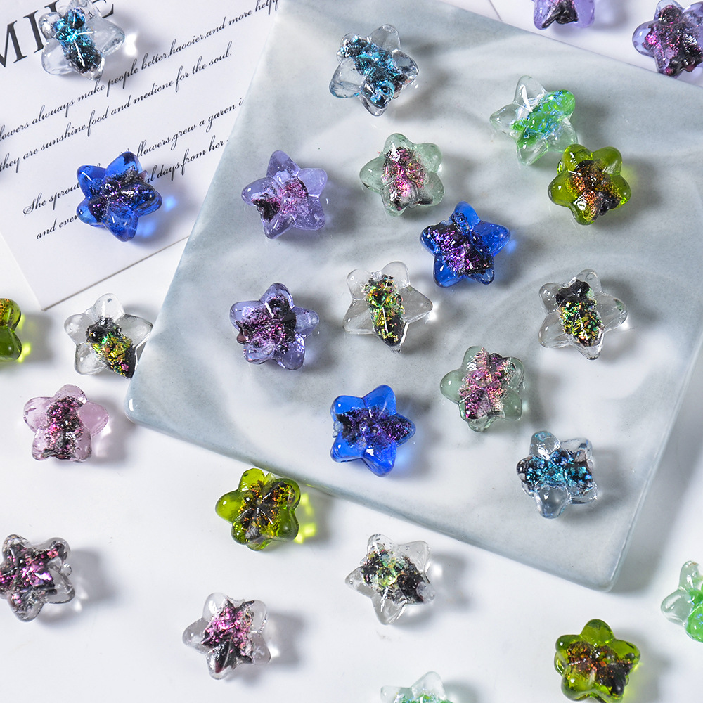 琉璃复古彩箔星星直孔琉璃散珠子 手工diy手链项链手机链配件材料