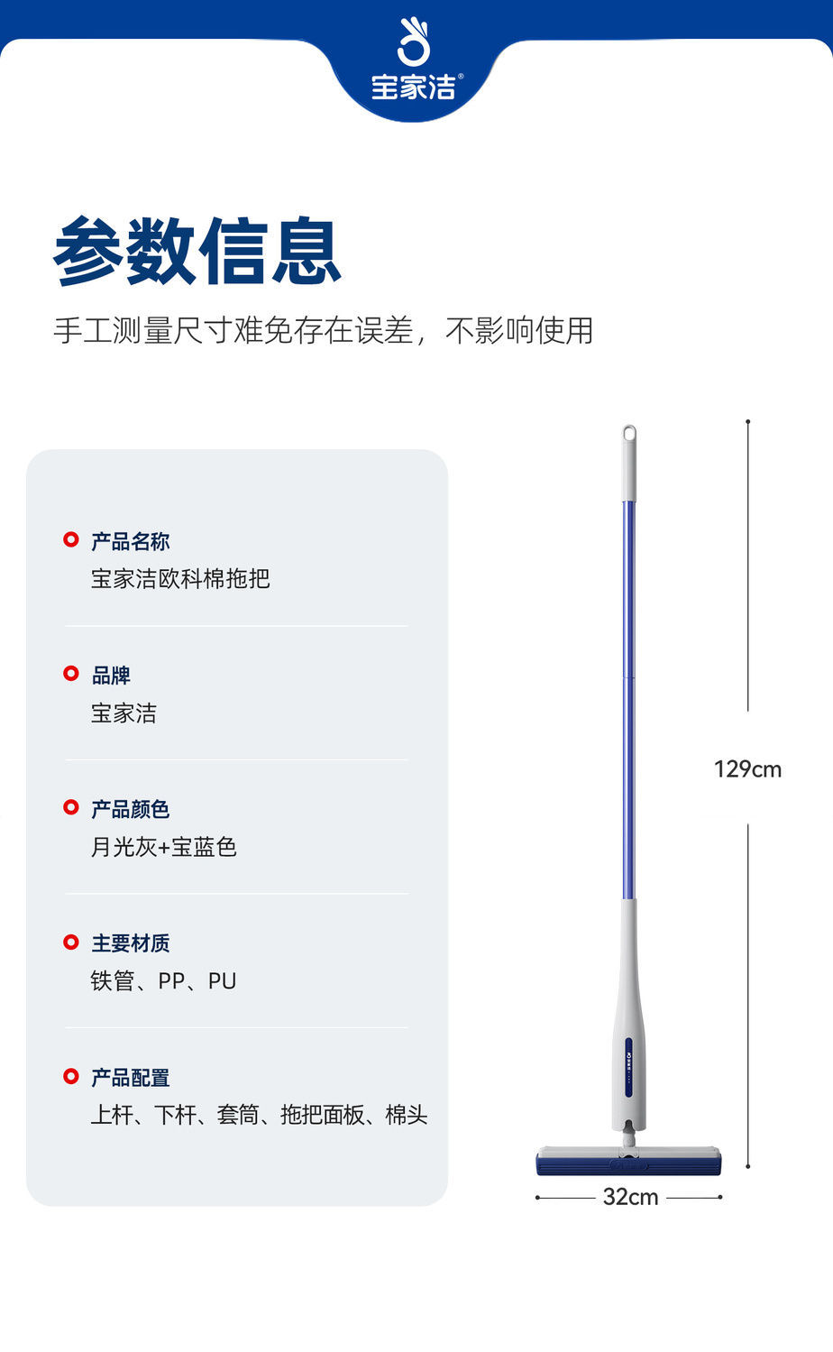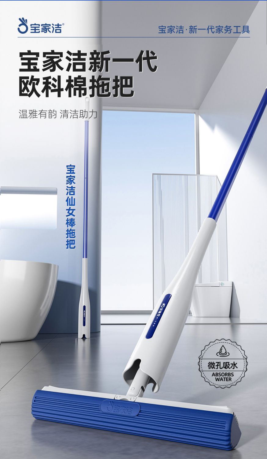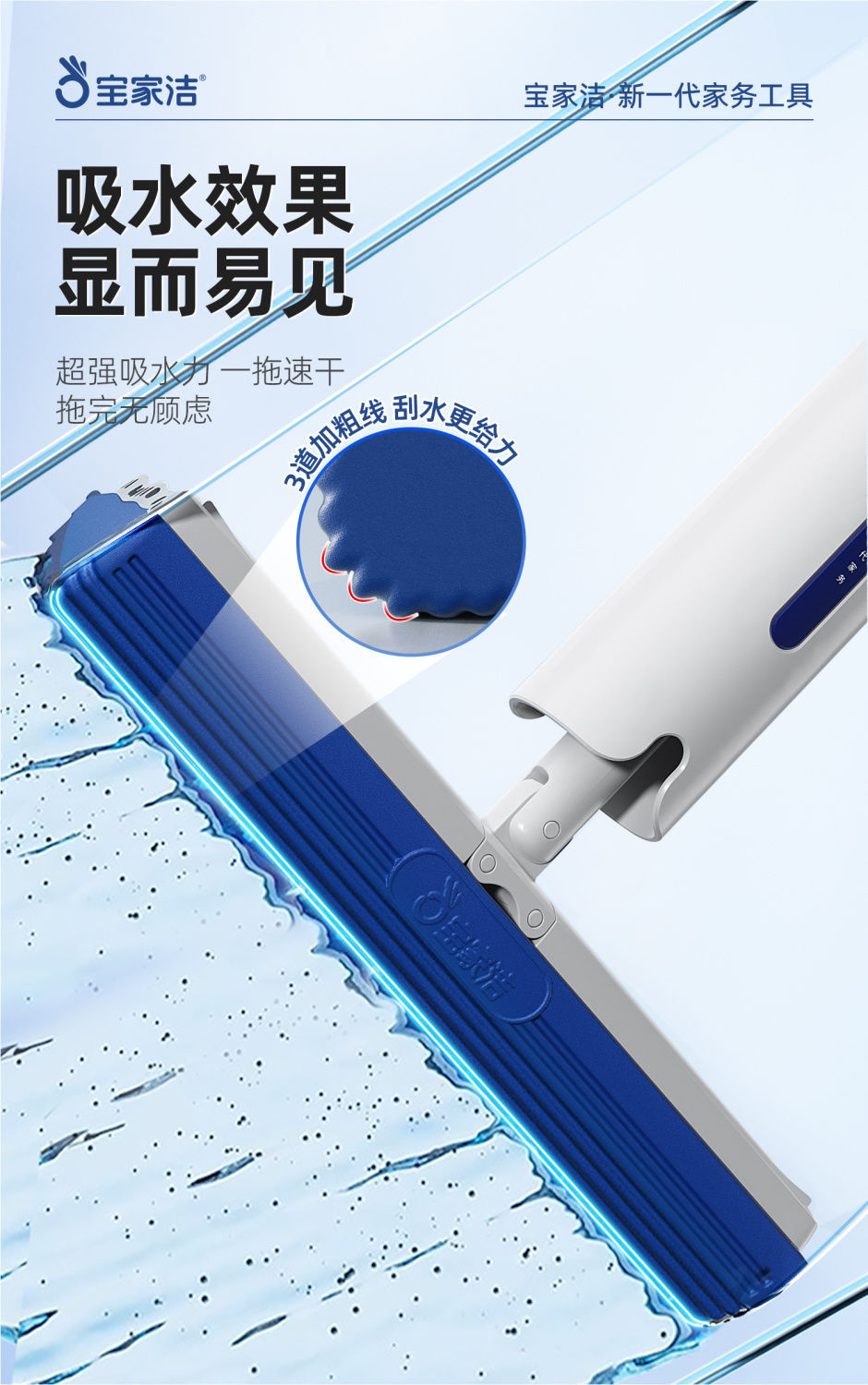 【杨幂礼盒】宝家洁新款新一代升级站立收纳胶棉拖把海绵吸水