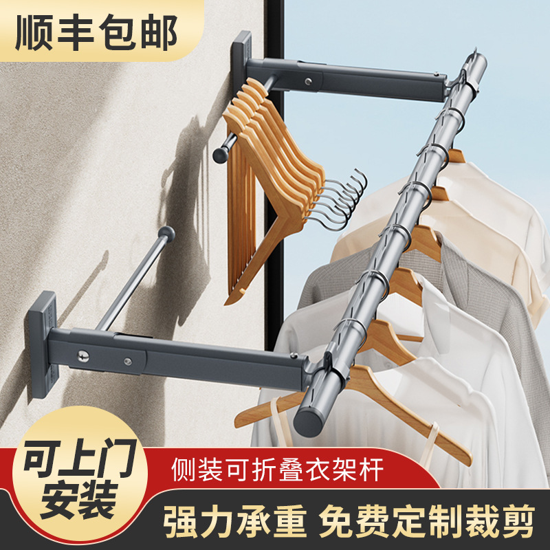 阳台固定式挂衣杆侧装晾衣杆墙上晒衣杆家用可折叠晾衣架防风挂杆