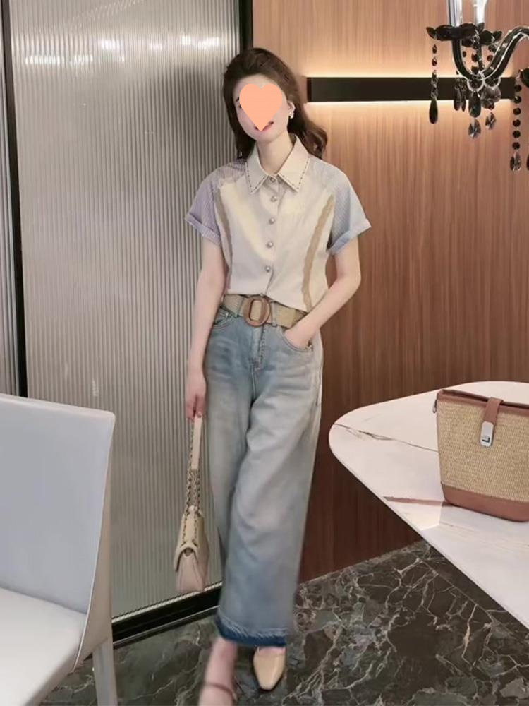 レディースおしゃれな夏用半袖ポロシャツ、コントラストカラー、高級スリムティーシリーズ、新しいニッチなカラーマッチング、ツーピース夏