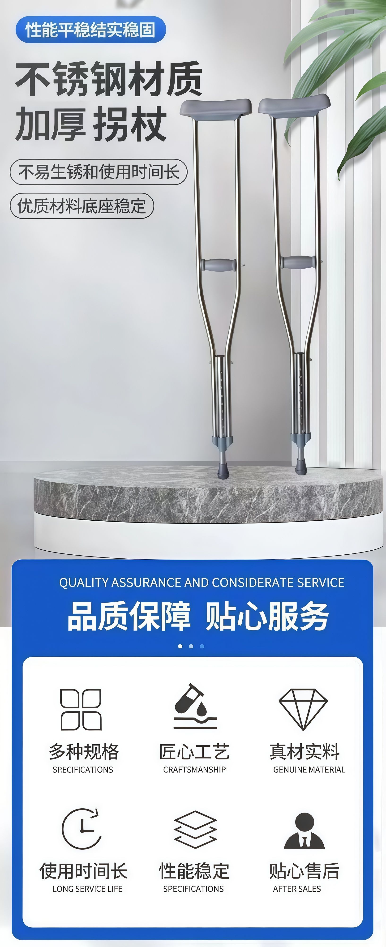 脇の下杖、医療用二重杖、若者骨折用リハビリ歩行杖、高齢者用滑り止め杖、歩行器