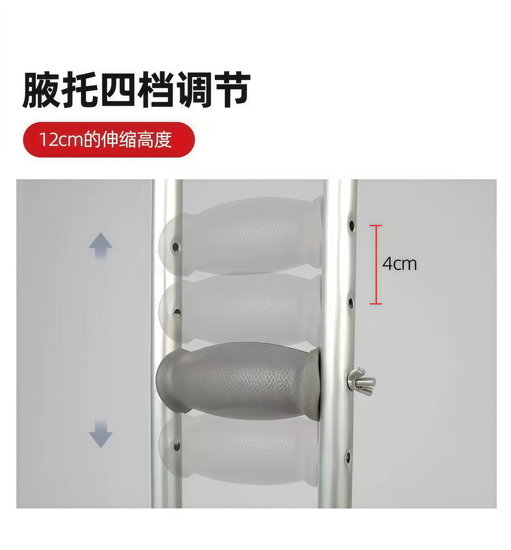 高齢者用松葉杖、厚みのあるトレッキングスティック、滑り止め杖、伸縮式調節可能なステンレス鋼アルミニウム合金アームレストフレーム