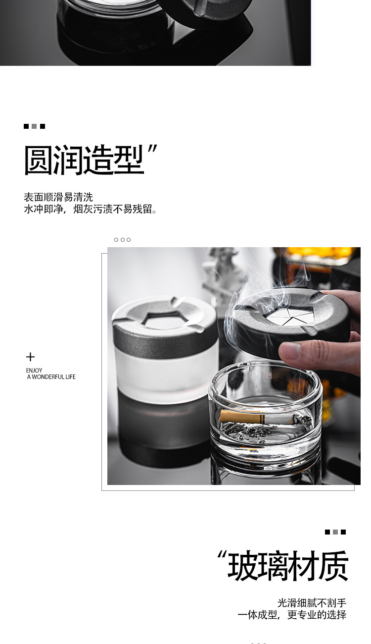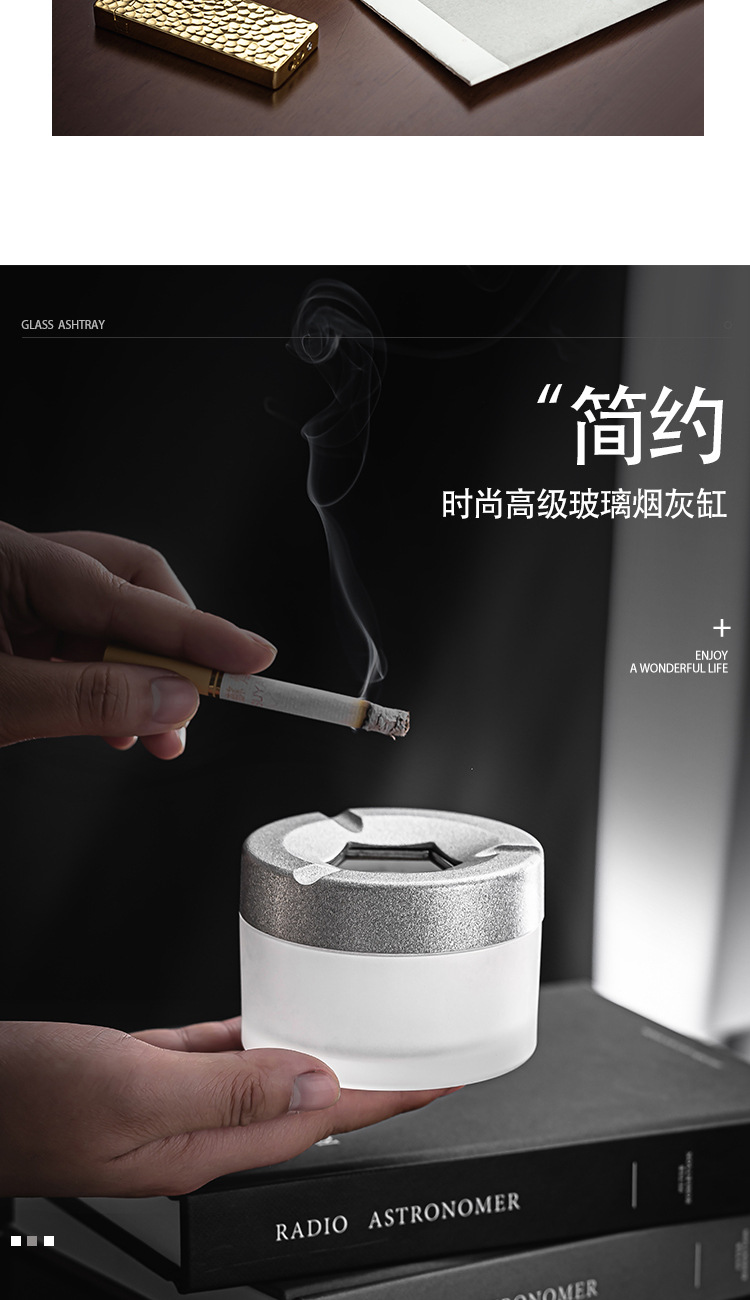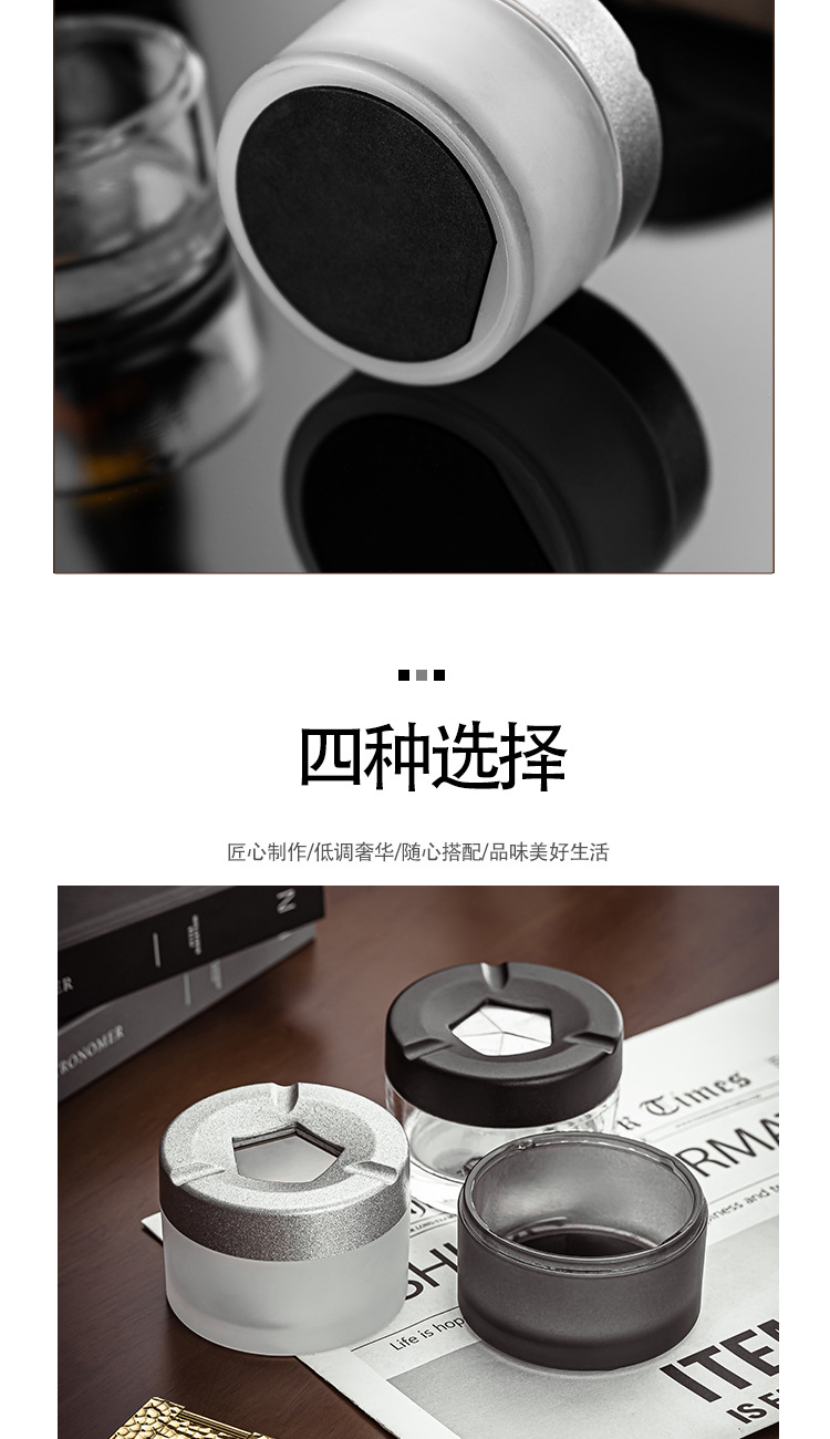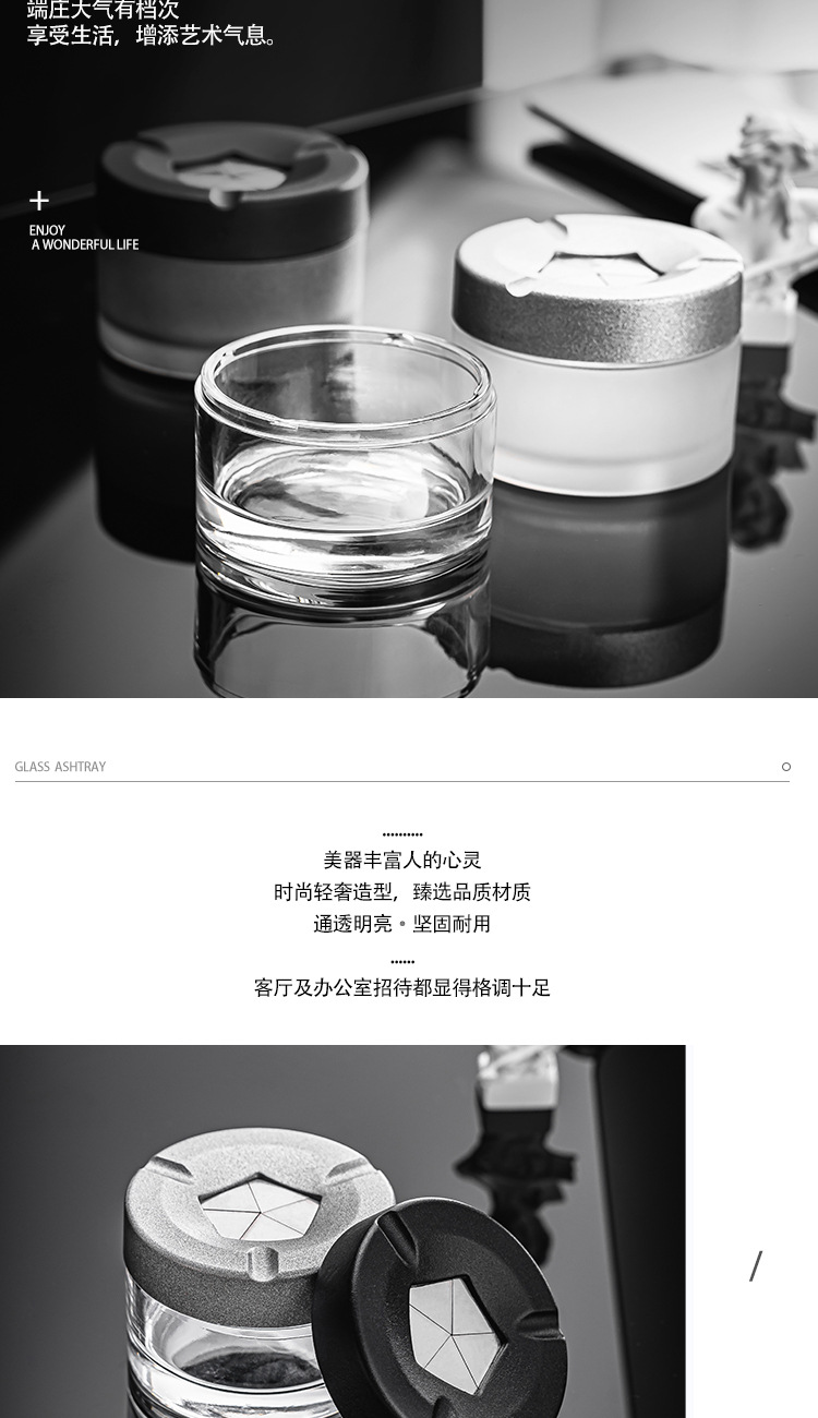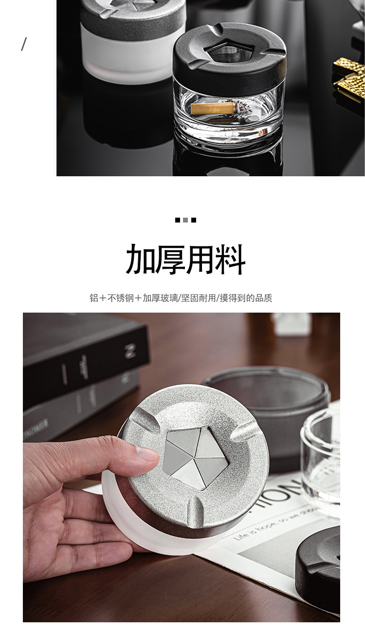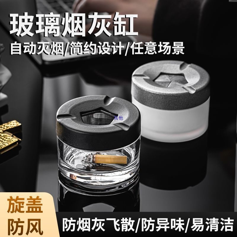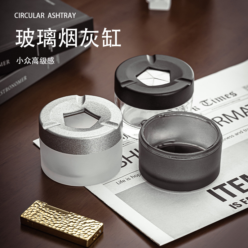 新しいガラスのパーソナライズされたクリエイティブな開閉灰皿、蓋付きホームオフィス、飛散防止灰皿、高価値灰皿
