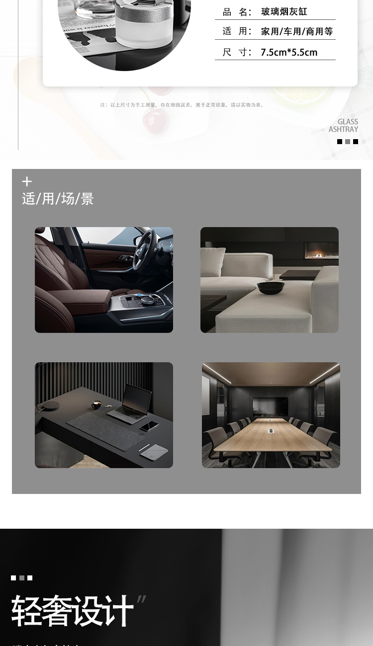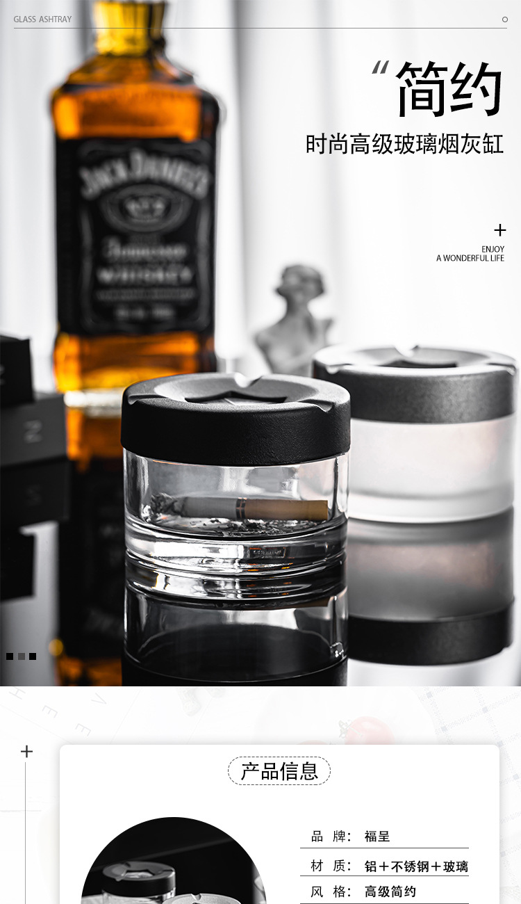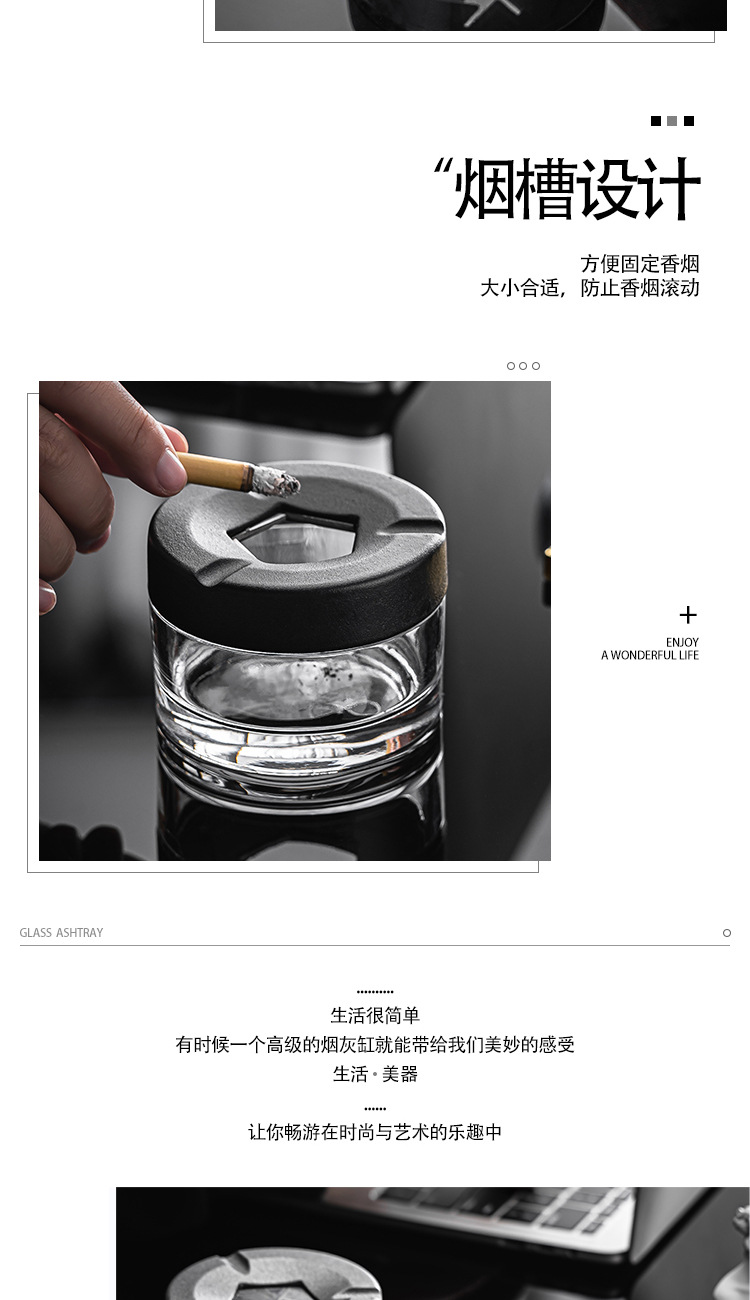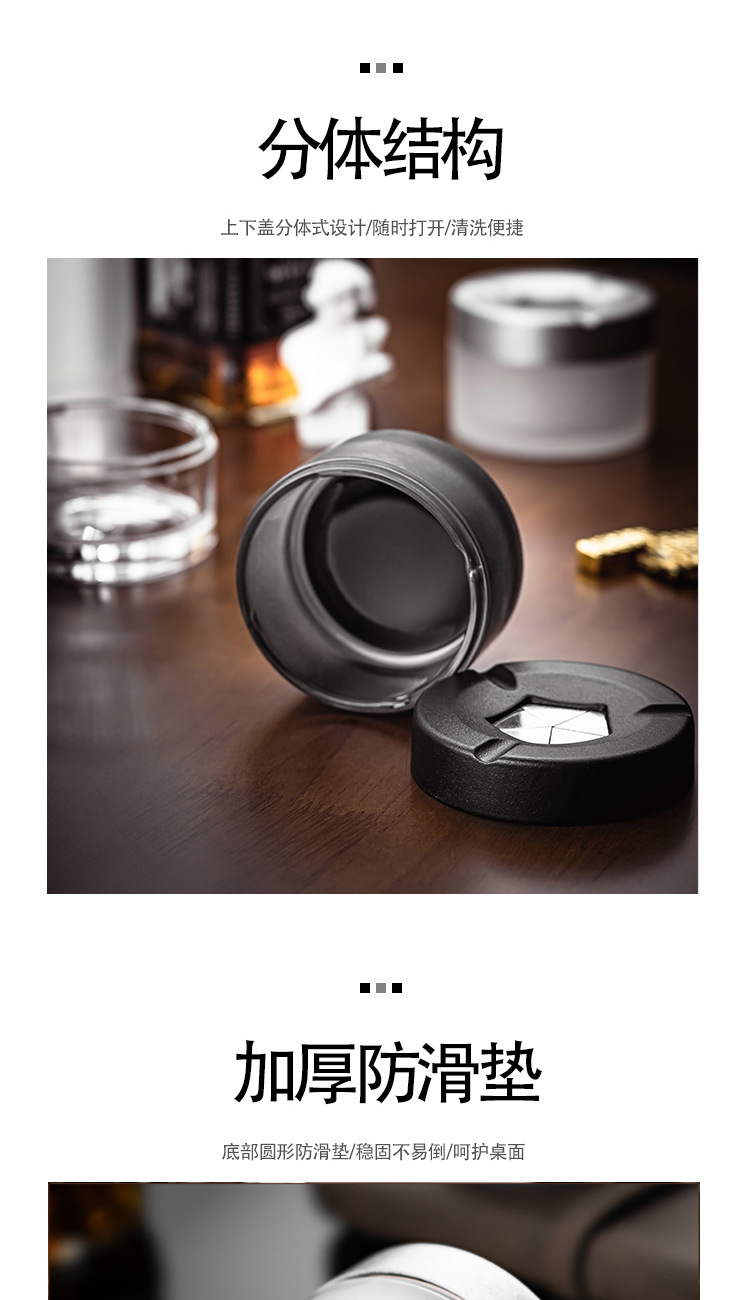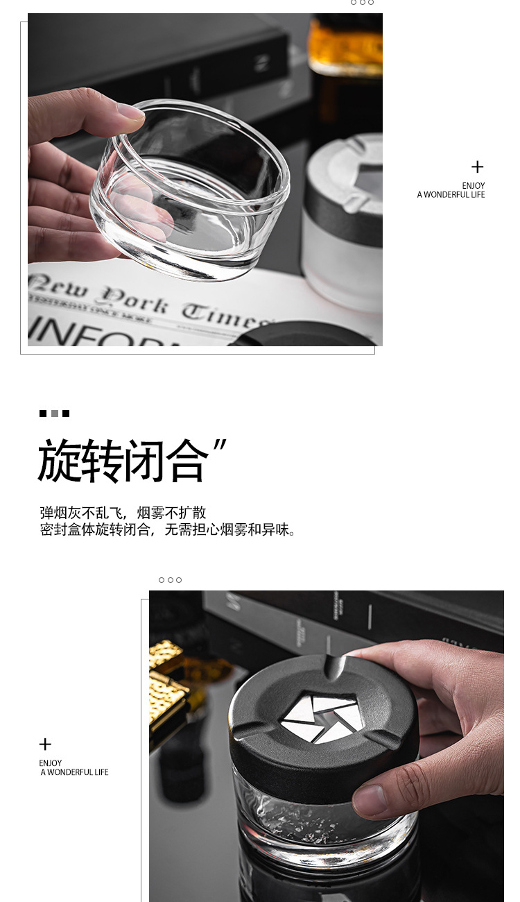 旋转创意烟灰缸个性玻璃烟灰缸车载家用办公室有盖分体式新款时尚