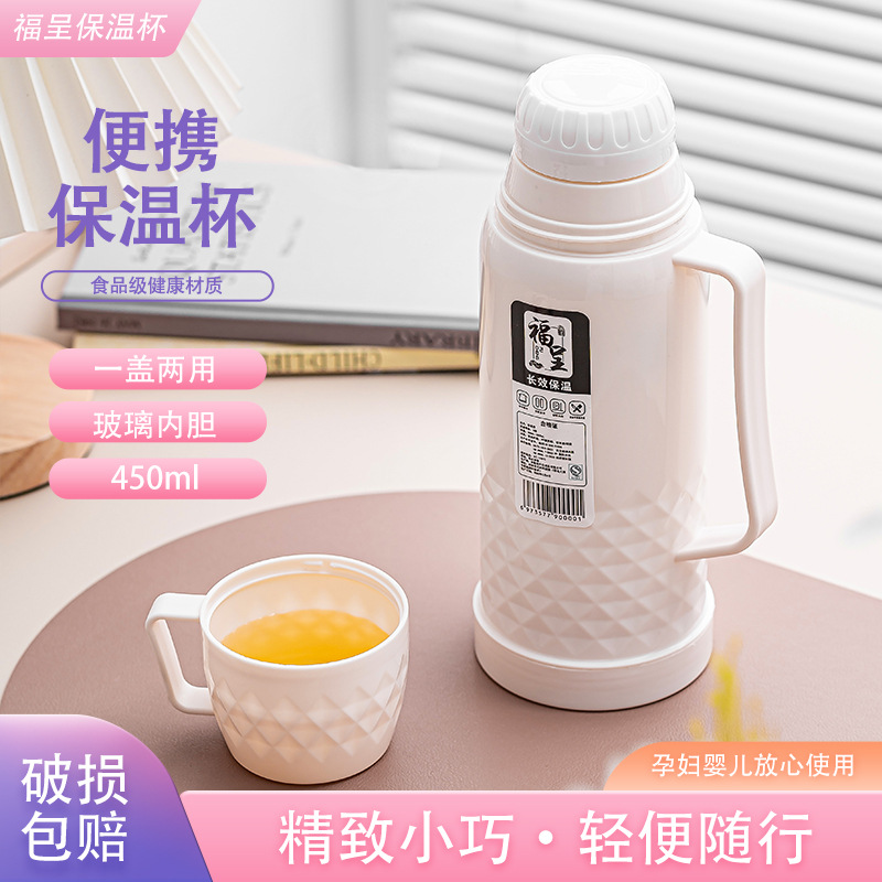 Fucheng 家庭用魔法瓶ケトル 450 ミリリットル小容量ポータブル魔法瓶ケトル魔法瓶白ピンク高価値ケトル