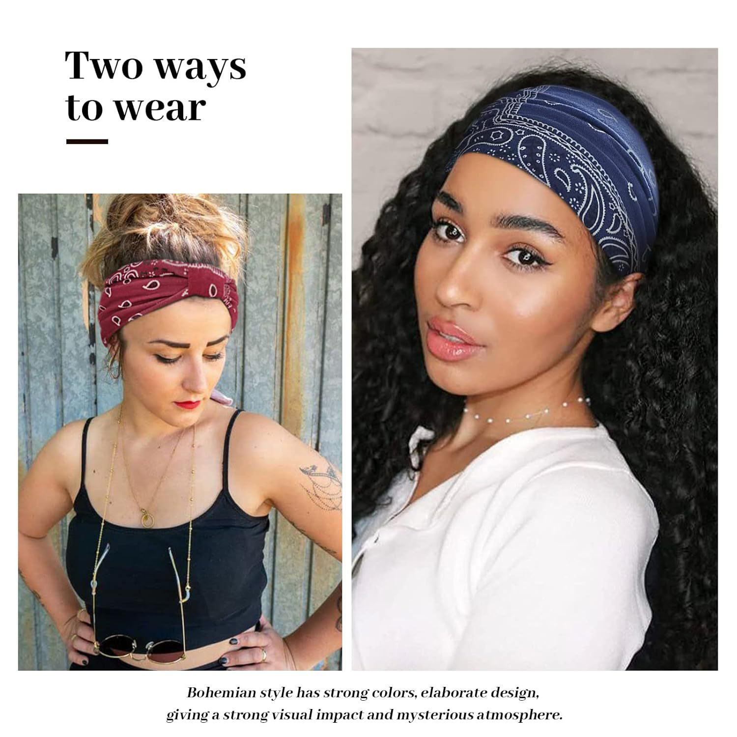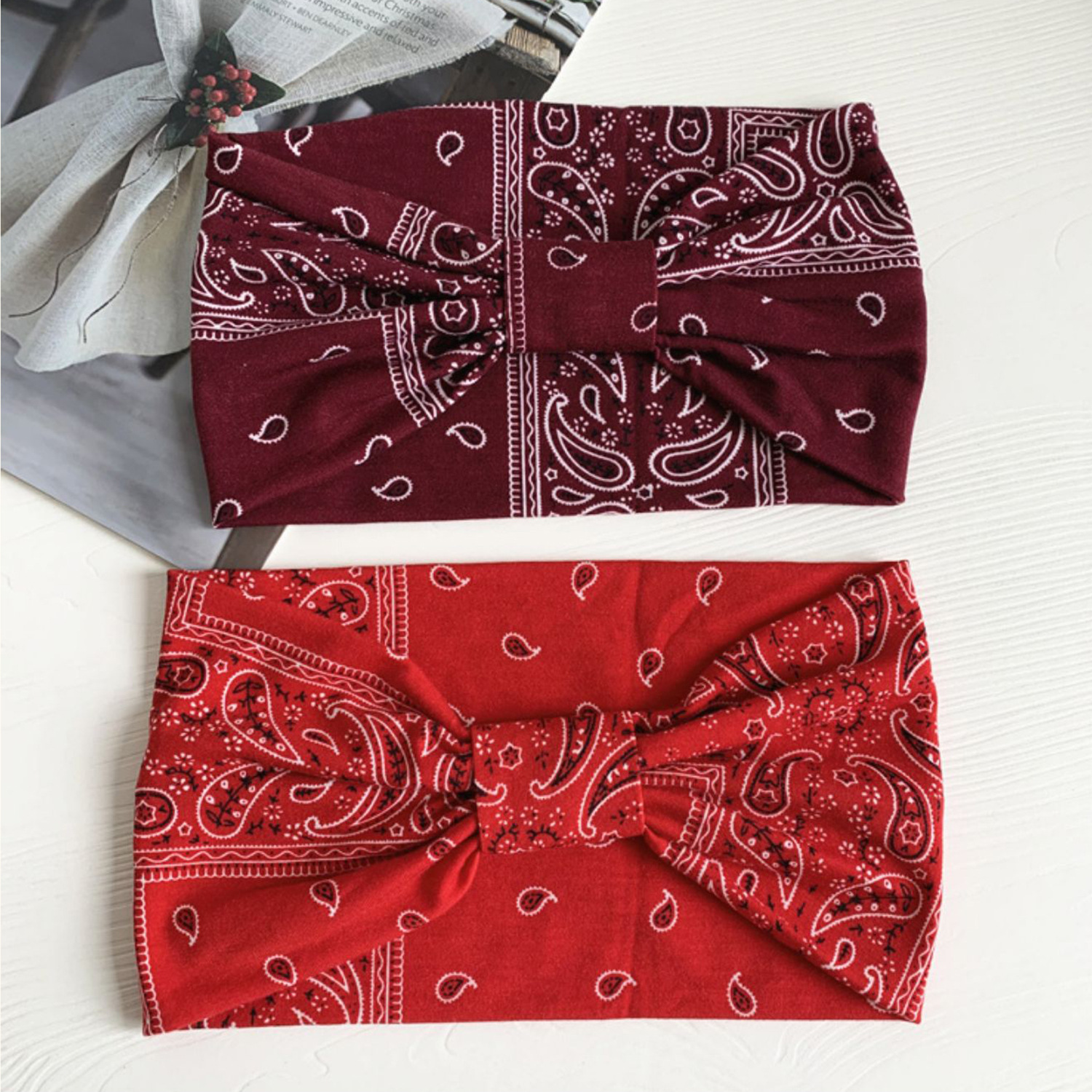 复古佩斯利发带腰果花纹瑜伽运动弹力宽发带女士日常化妆头带头饰