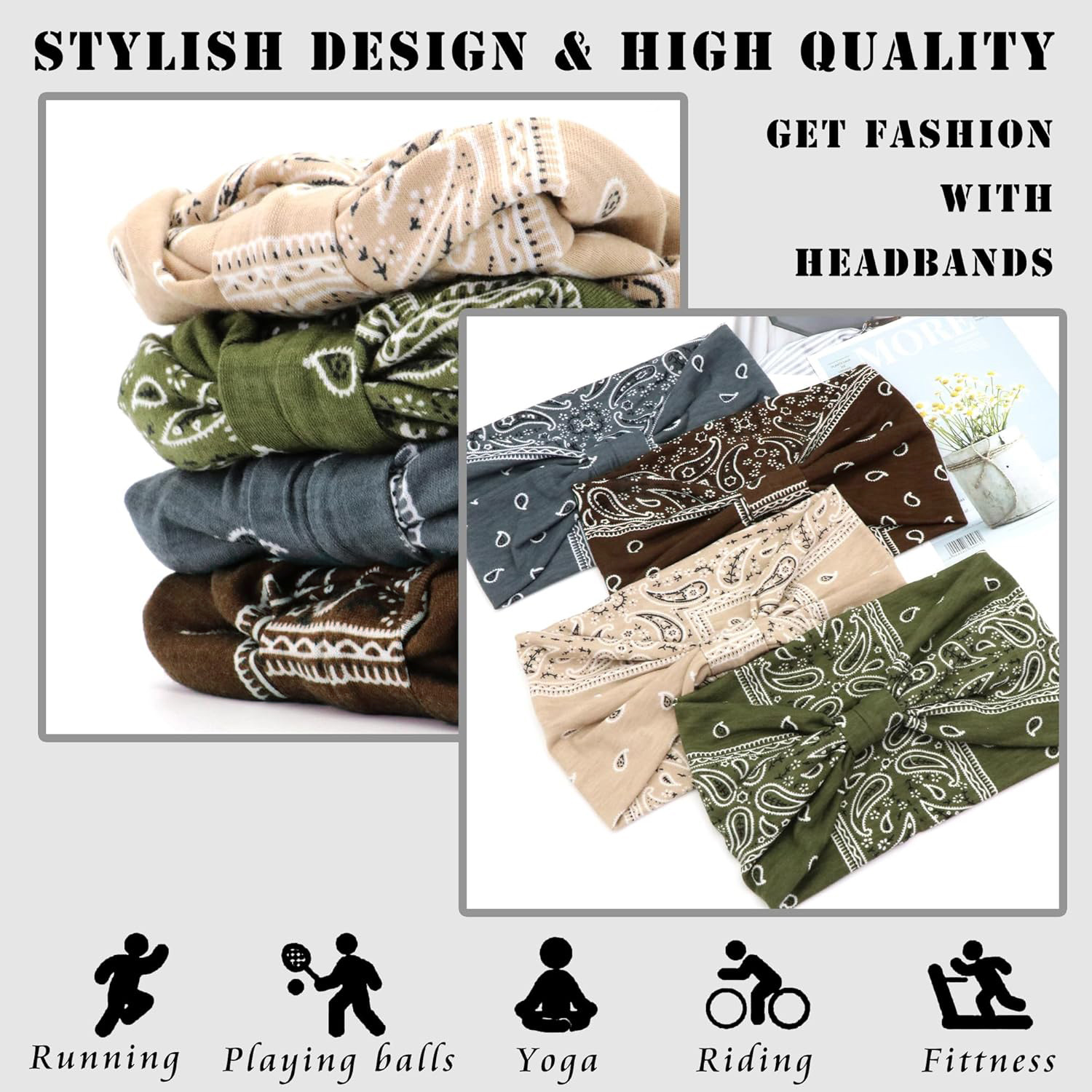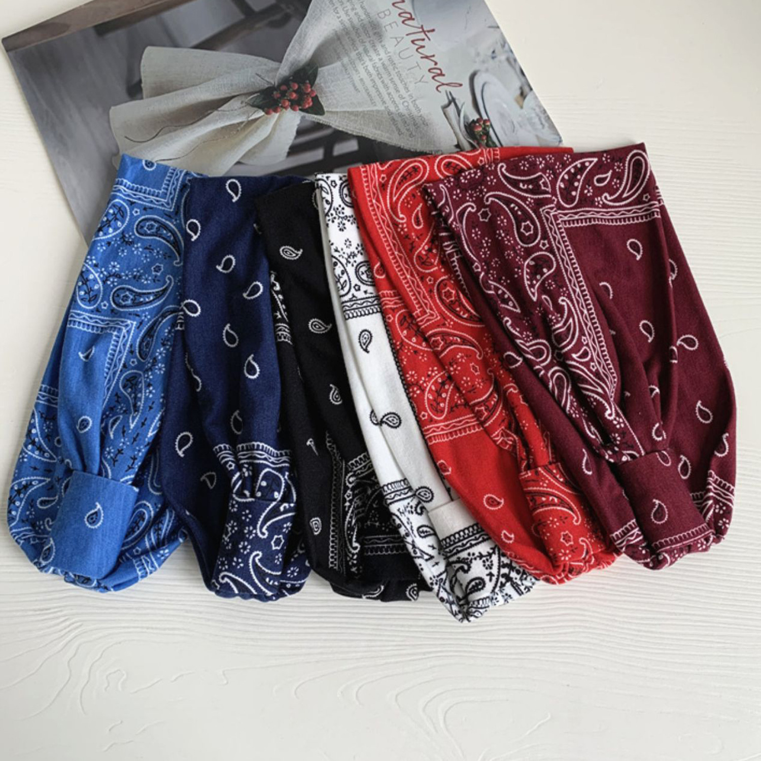 ヨーロッパとアメリカのカシューフラワーヘッドバンドペイズリーパターンワイドヘッドバンドスポーツヨガ吸汗性弾性コットンヘッドスカーフ女性用