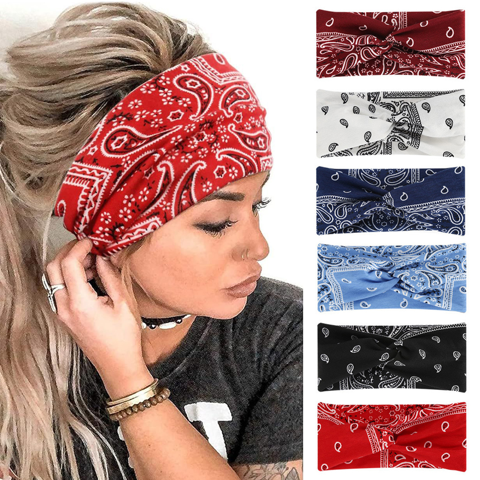 国境を越えたペイズリー腰果花交差ヘアバンド女性弾力綿ヘアバンド運動ヘッドバンド洗面頭飾り卸売り