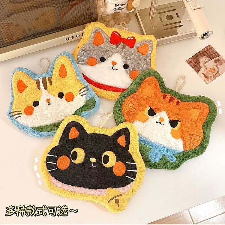 著作権吊り下げ可能な厚みのあるペット猫超吸収性かわいい漫画ハンドタオルコーラルベルベットキッチンバスルーム