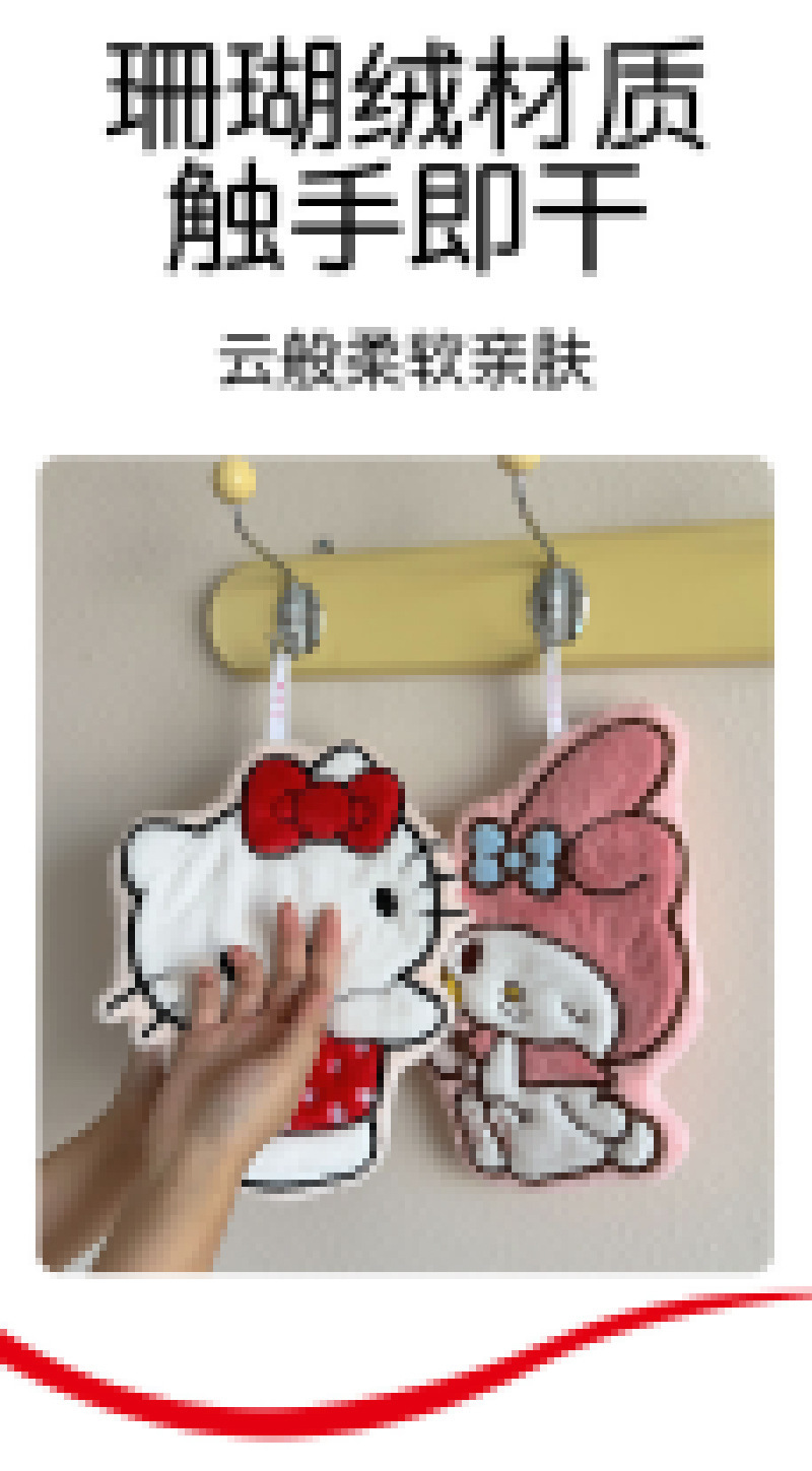 美乐蒂擦手巾厂家批发珊瑚绒吸水擦手布可挂式儿童可爱卡通小毛巾
