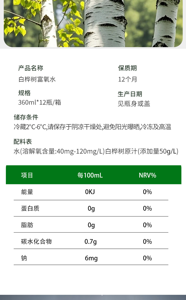 白桦树汁 天然白桦树汁原液桦树森林白桦树汁饮料330g代发贴牌
