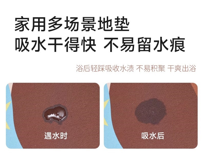 卡通硅藻泥地垫吸水速干卫生间厕所门口脚垫耐脏易打理防滑脚垫