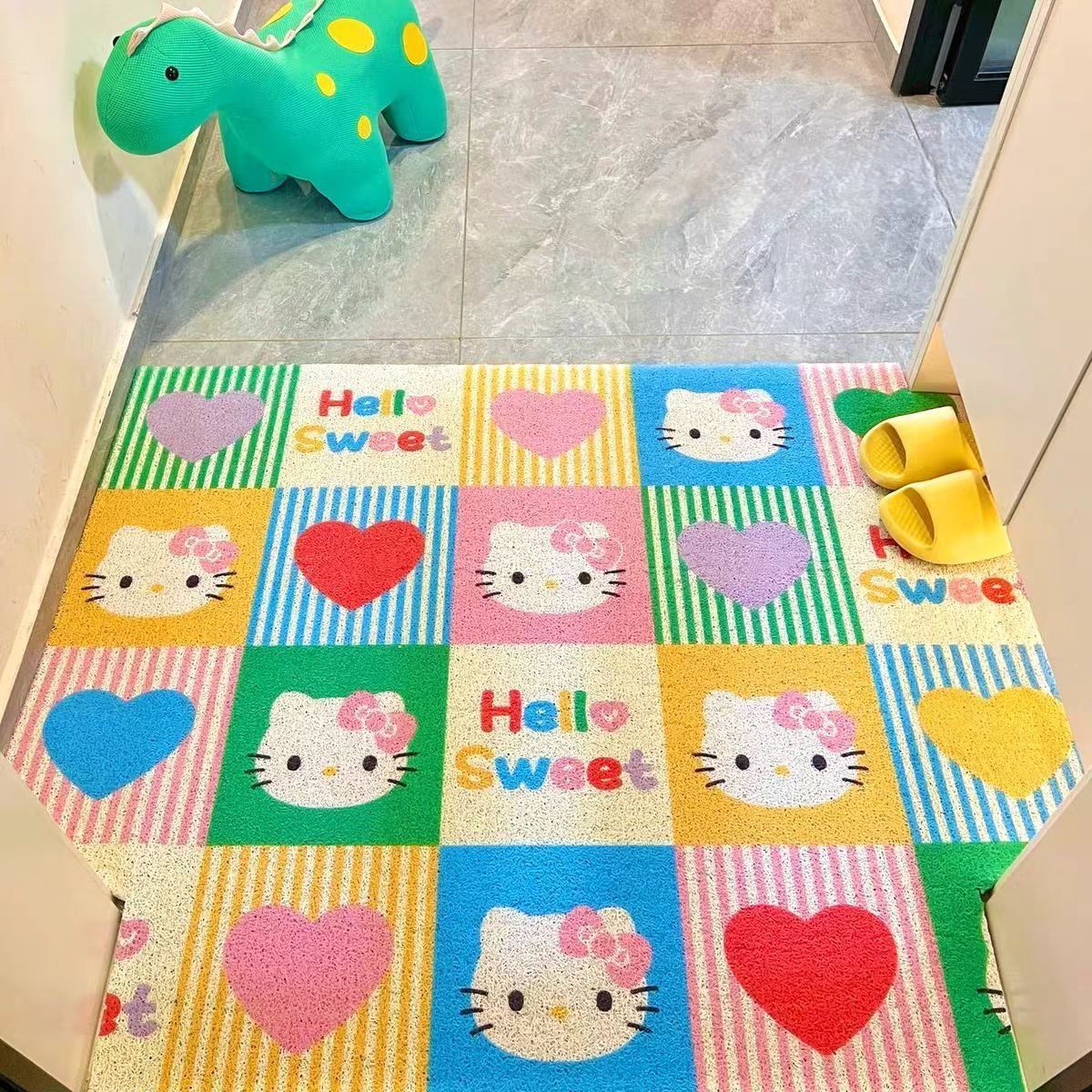 卡通入户地垫爱心猫咪格子防滑垫家用进门玄关刮泥蹭土可裁剪门垫