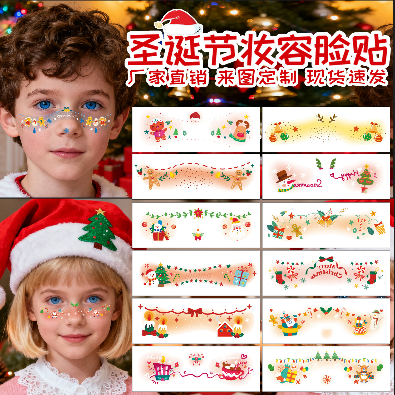 跨境新款可爱圣诞节纹身贴妆容脸贴可爱卡通儿童圣诞派对雀斑脸部