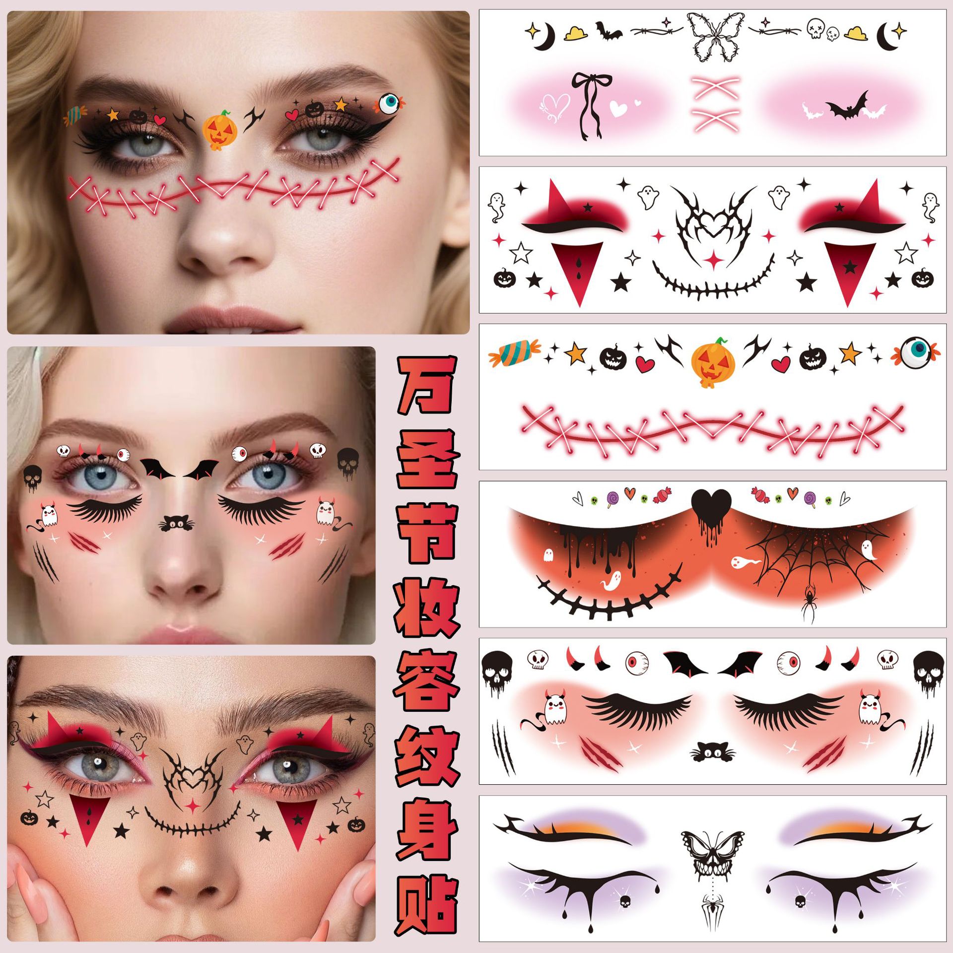 クロスボーダー新しいハロウィンメイクアップフェイスステッカーかわいいゴーストメイクアップタトゥーステッカーパーティーパーティーステッカー防水汗タトゥー