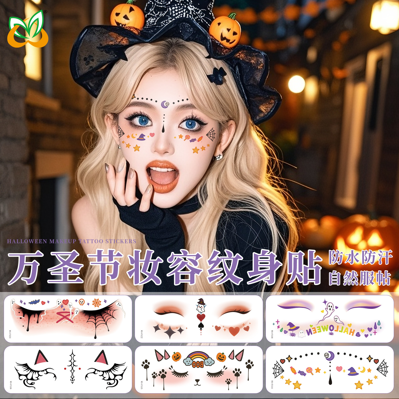 クロスボーダー新しいハロウィンメイクアップフェイスステッカーかわいいハロウィンホリデーパーティーショーフェイクトレーニングタトゥーステッカー