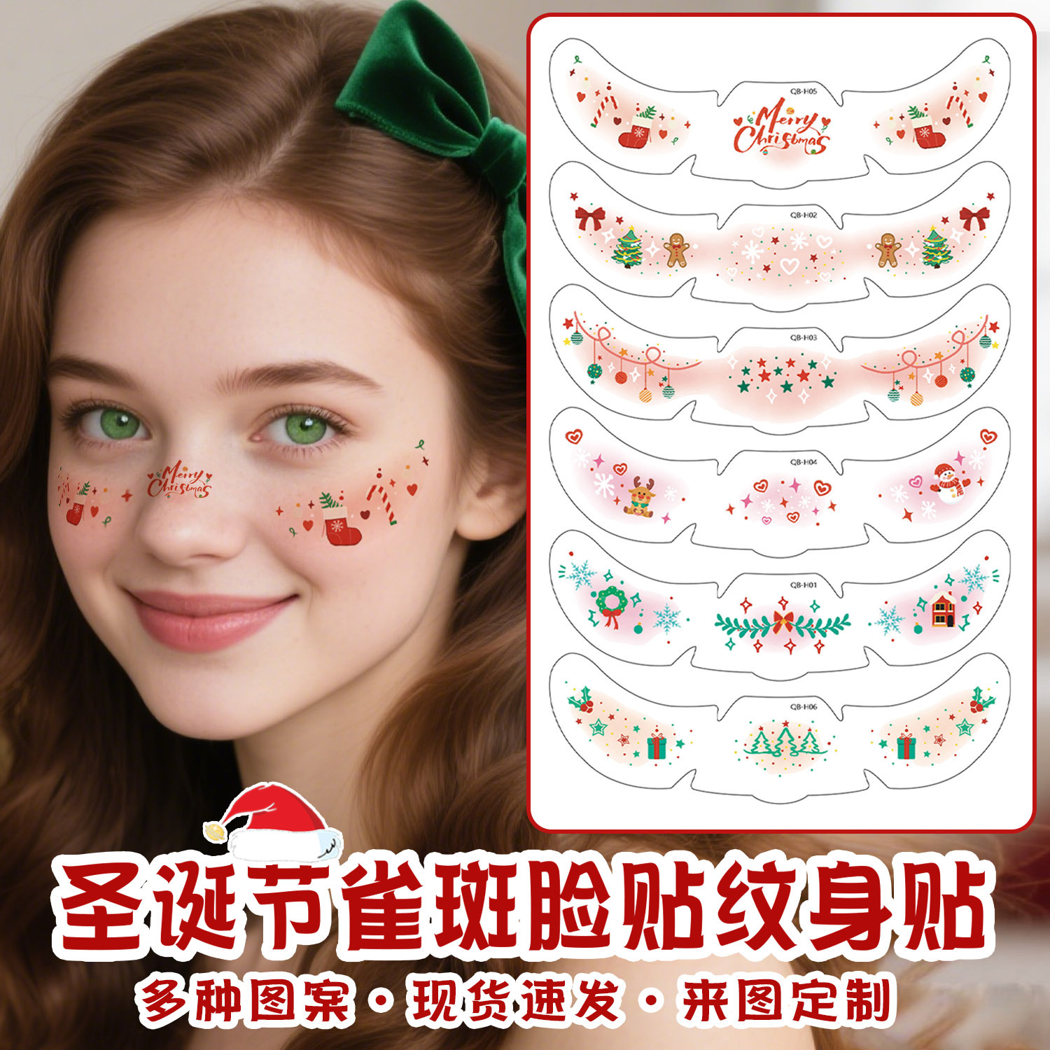 クロスボーダー新しいクリスマスそばかすタトゥーステッカーホットスタンピングかわいい女の子メタルフェイスハイエンドメイクアップタトゥーステッカー