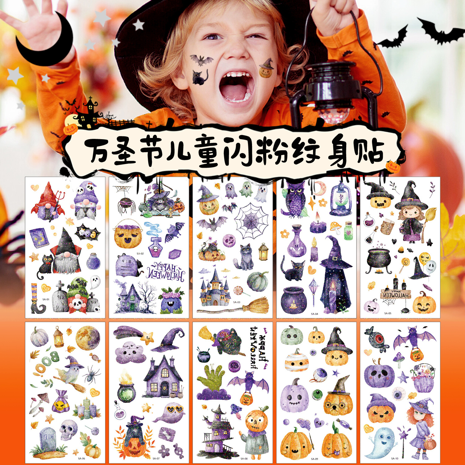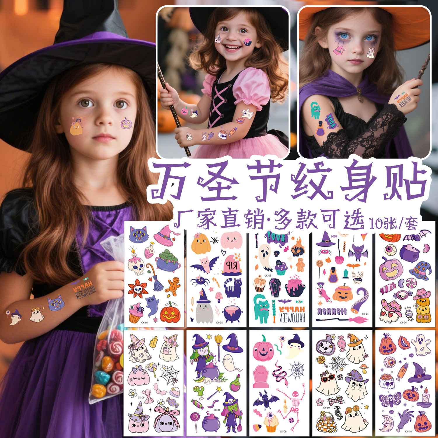 跨境新款可爱万圣节纹身贴卡通儿童万圣暗黑派对可爱搞怪纹身贴纸