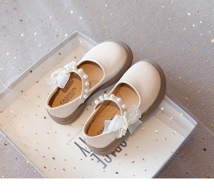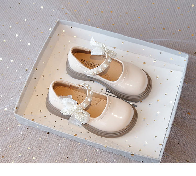 女の子の革靴 2025 春と秋の新韓国スタイル少女パールソフトソール外国汽プリンセスシューズ英国スタイルのシングルシューズトレンド
