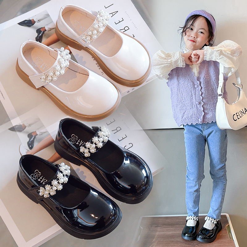 女の子靴2025春英倫真珠jkメアリージェーン靴王女女の子靴ソフト底中大童楽福靴