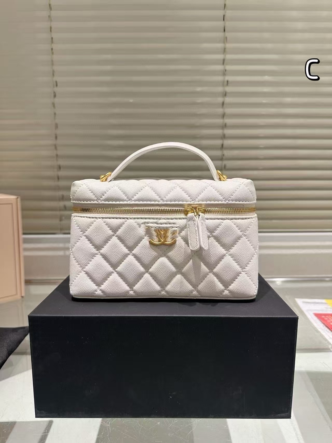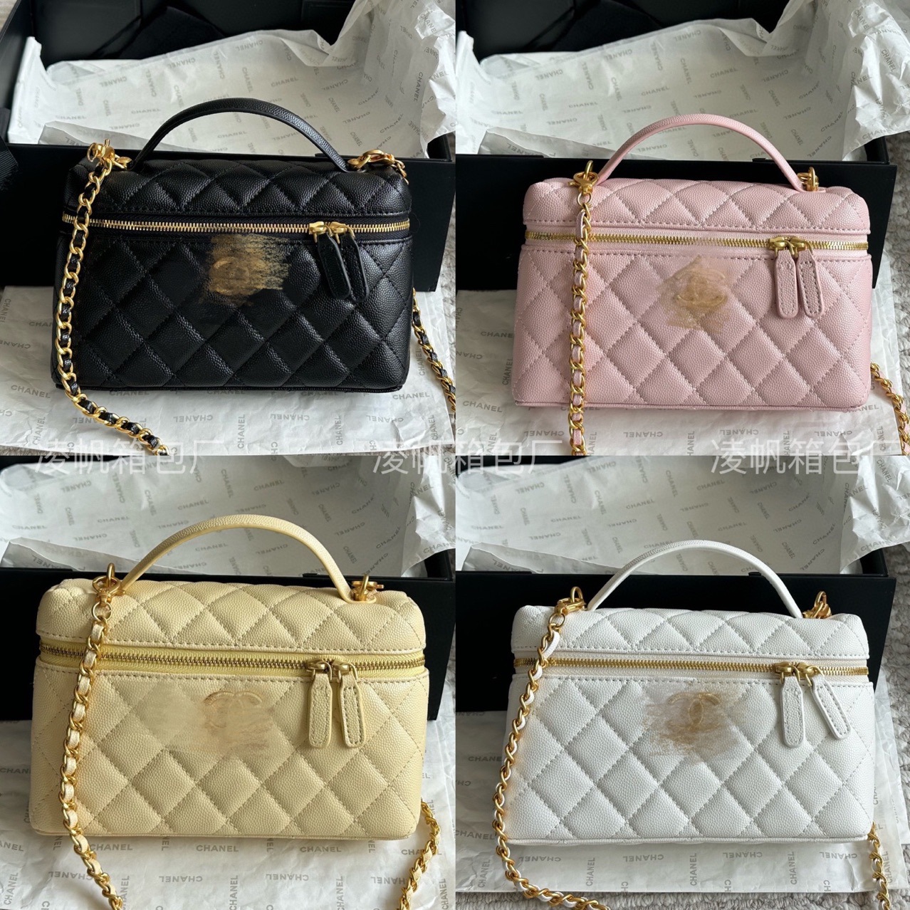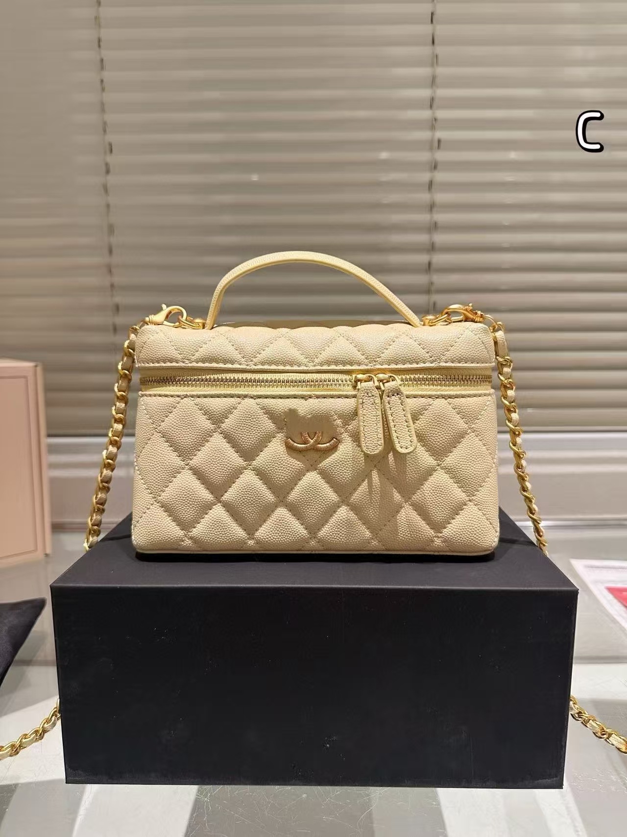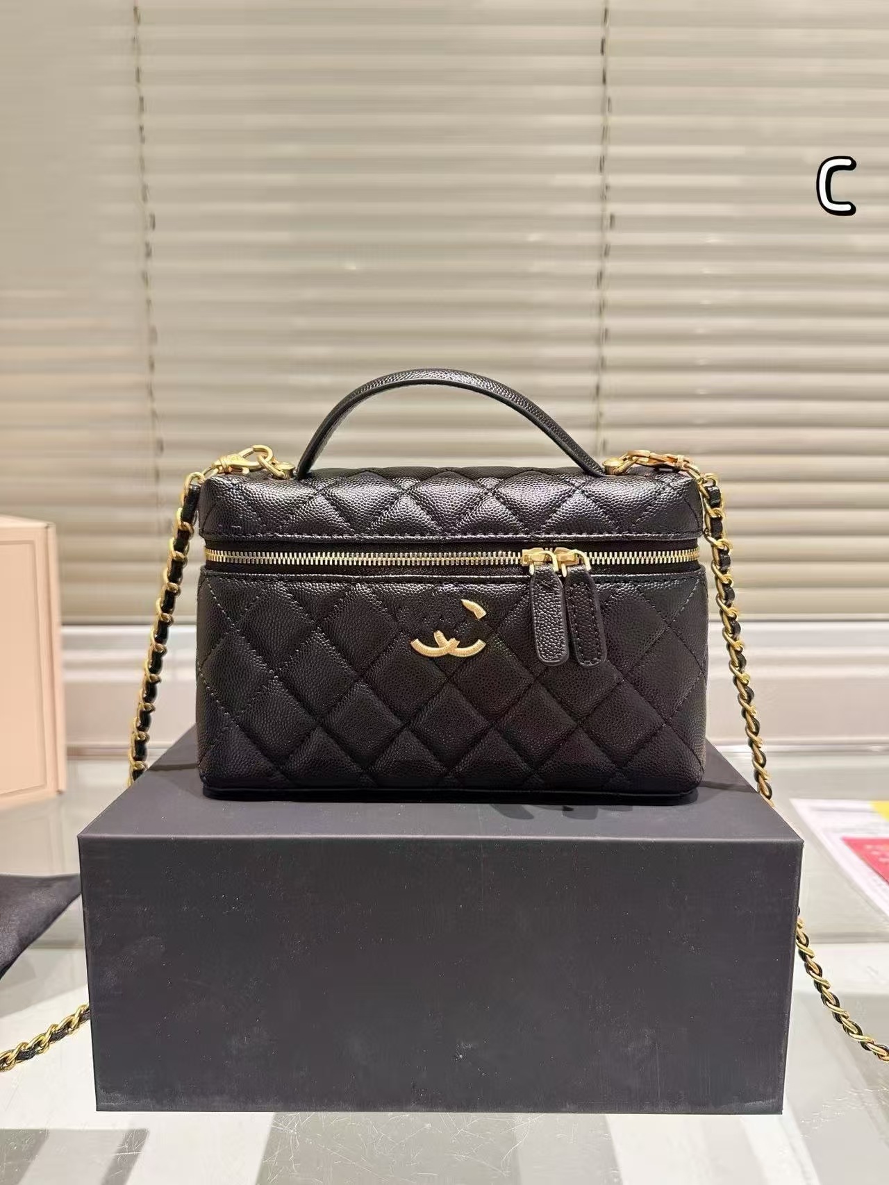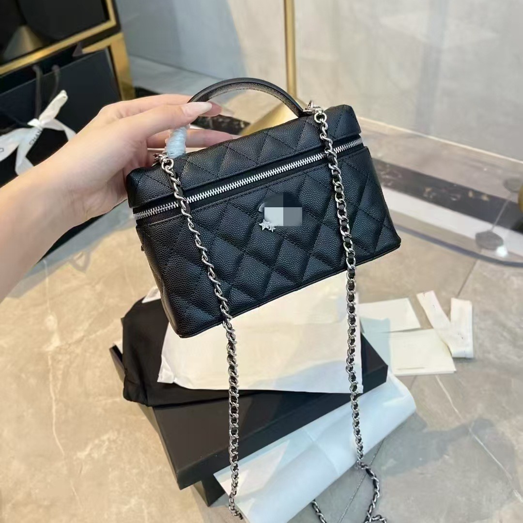 跨境2025早春新款真皮手提菱格链条盒子单肩斜挎包时尚百搭化妆包
