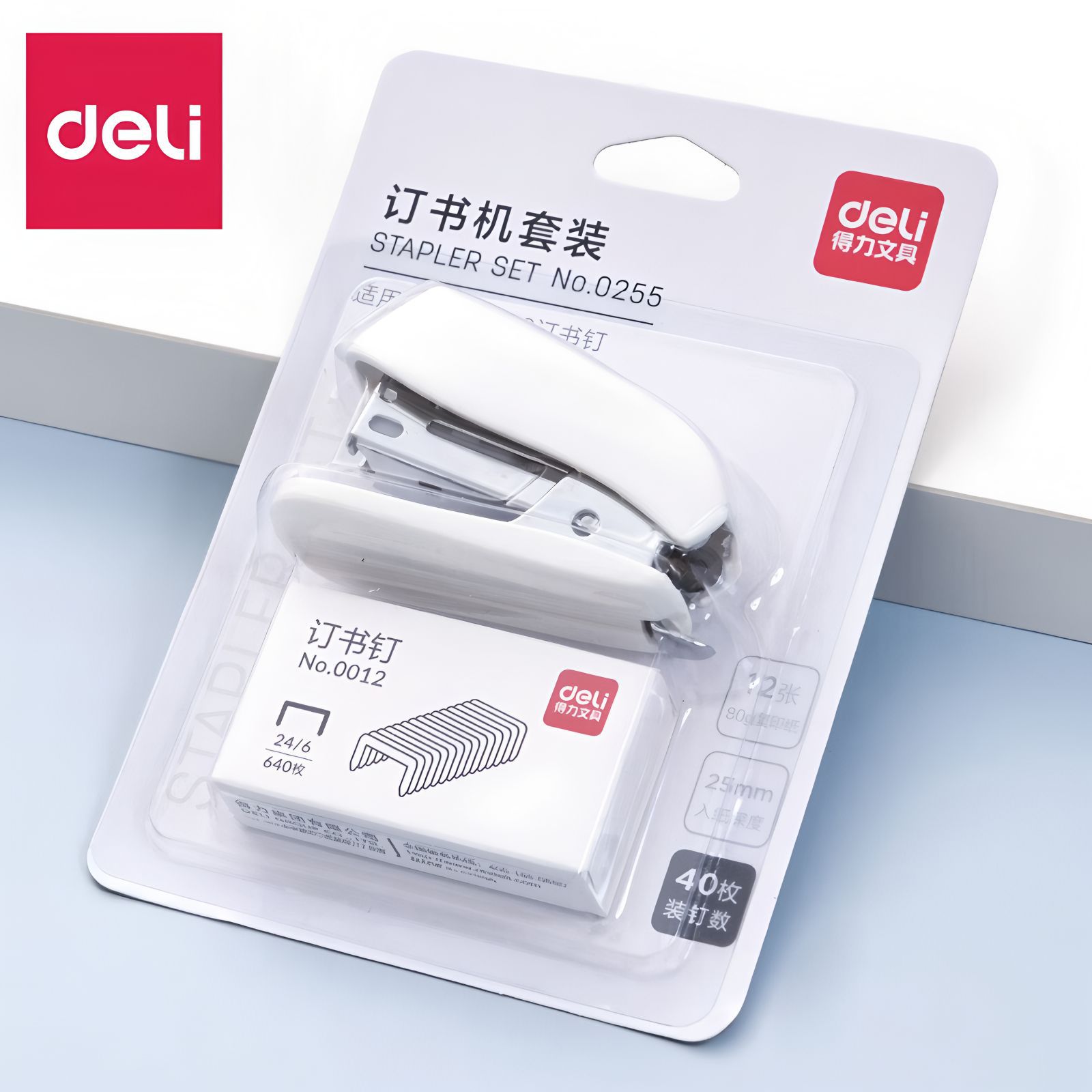 得力迷你订书机便携式家用小型办公省力按压订书器学生订书机套装