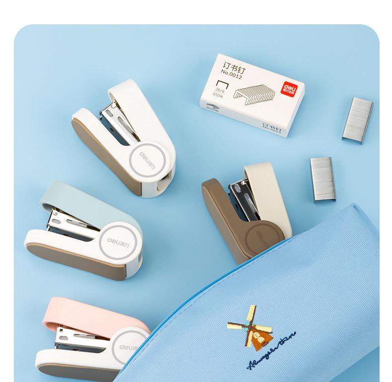 得力迷你订书机 小巧可爱便携省力订书器 学生办公用便携式装批发