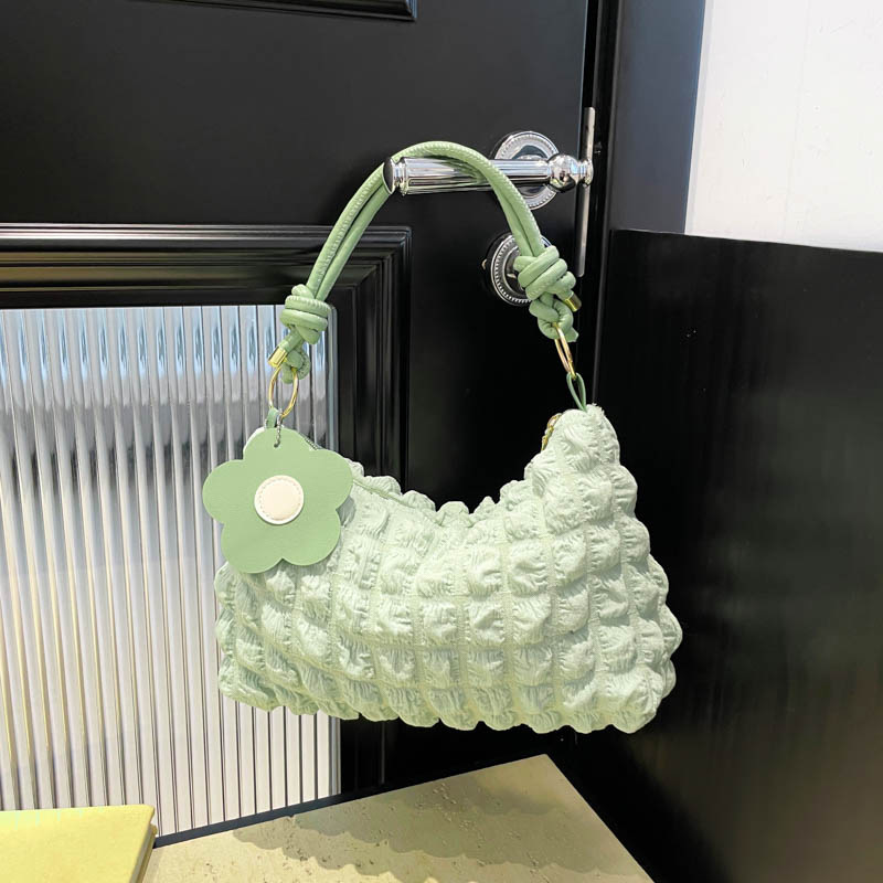 プリーツ大容量ファッショナブルな韓国スタイルの無地ショルダーバッグ 2025 新しいスタイルの小さな新鮮なクロスボディ結び目ショルダーストラップ小さなバッグ
