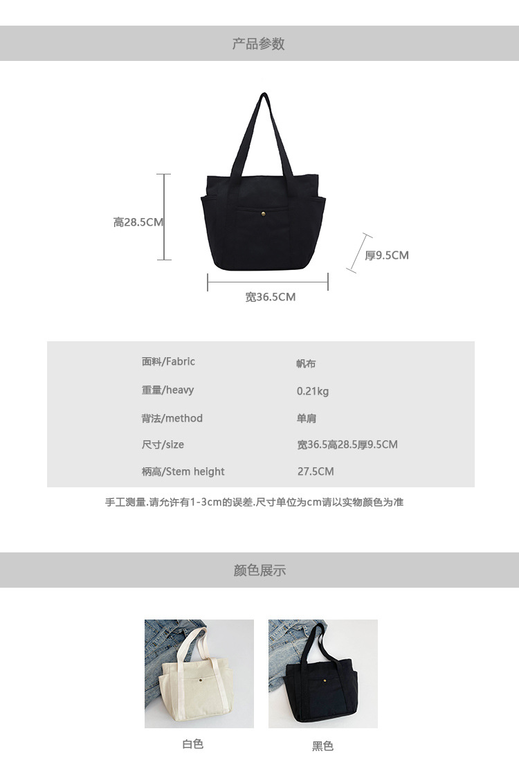 高颜值通勤百搭大容量托特帆布包上班外出文艺学生装书单肩腋下包