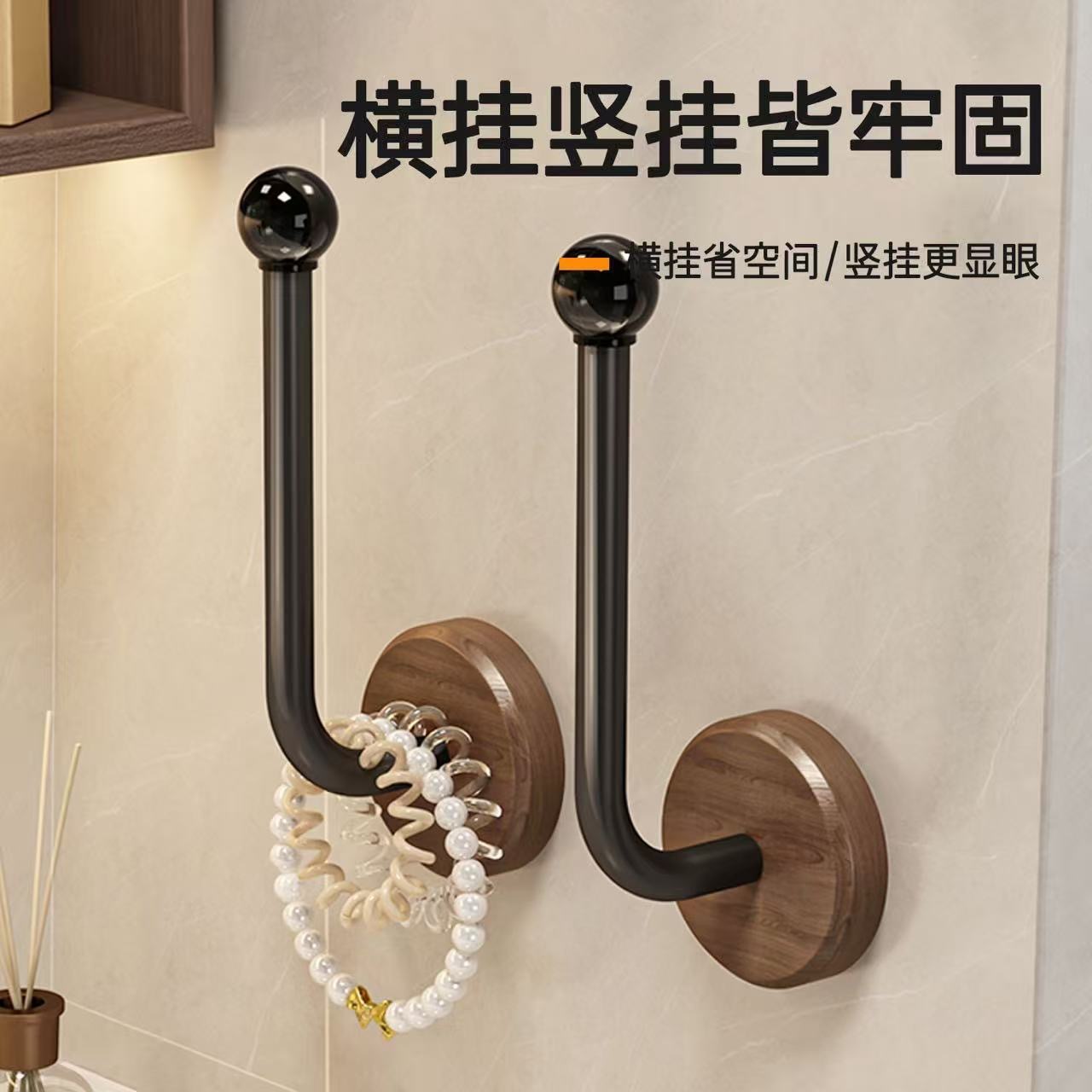 ✅卫生间胡桃木发圈发箍发绳收纳挂钩免打孔壁挂首饰发饰夹皮筋挂