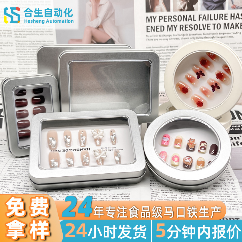 ラウンドマニキュアブリキ箱長方形ウェアラブルネイル包装ブリキ箱シルバー窓付き金属ブリキ箱