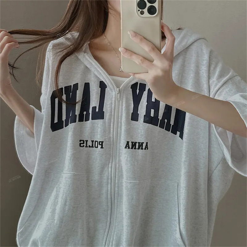半袖カーディガンニッチデザイントップグレースウェットシャツ女性のための 2025 春夏韓国スタイルスポーツルーズパーカージッパー