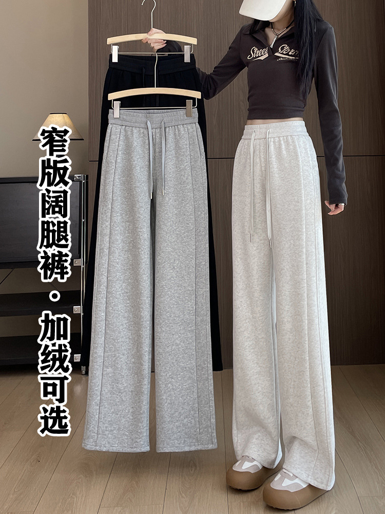 秋冬加厚一体绒窄版阔腿裤女高腰百搭休闲卫裤遮肉显瘦保暖直筒裤