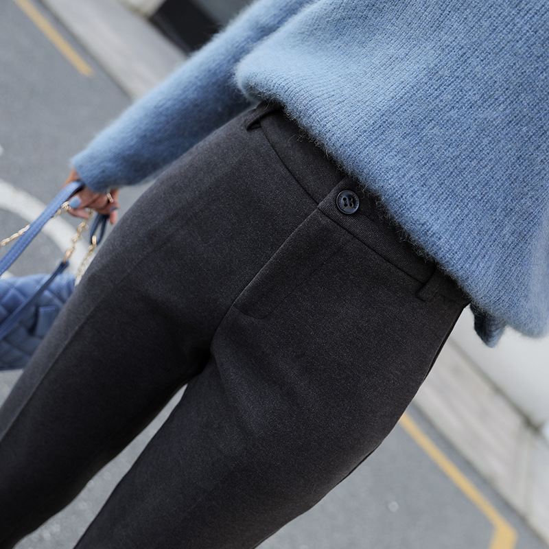 加绒直筒西装裤女秋冬加厚九分毛呢烟管裤子2025新款小个子休闲裤