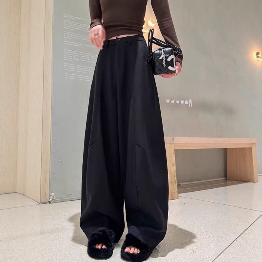高腰の狭い版のバナナのズボンの女性の春秋2025の新型の爆発のヨーロッパの商品の鎌のズボンの小さい背のまっすぐな筒の広い足のズボン