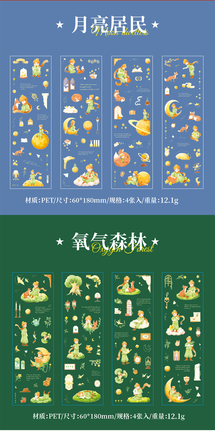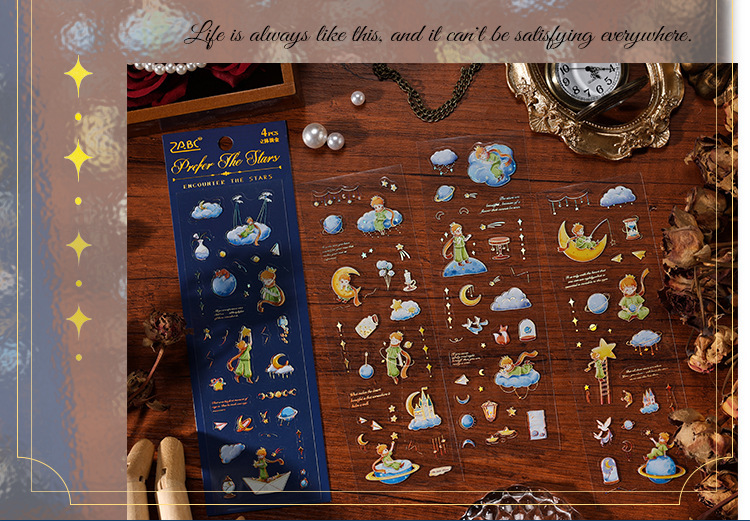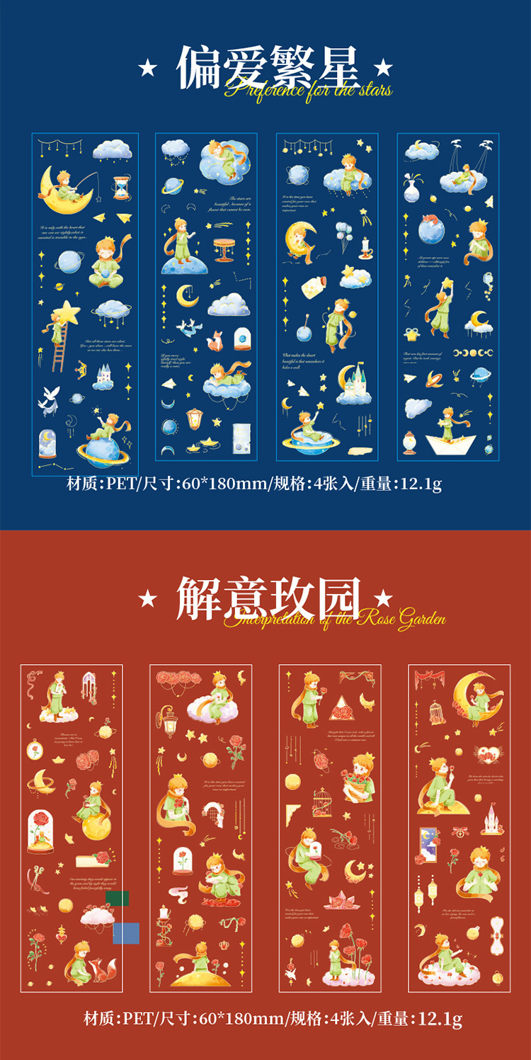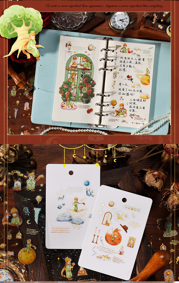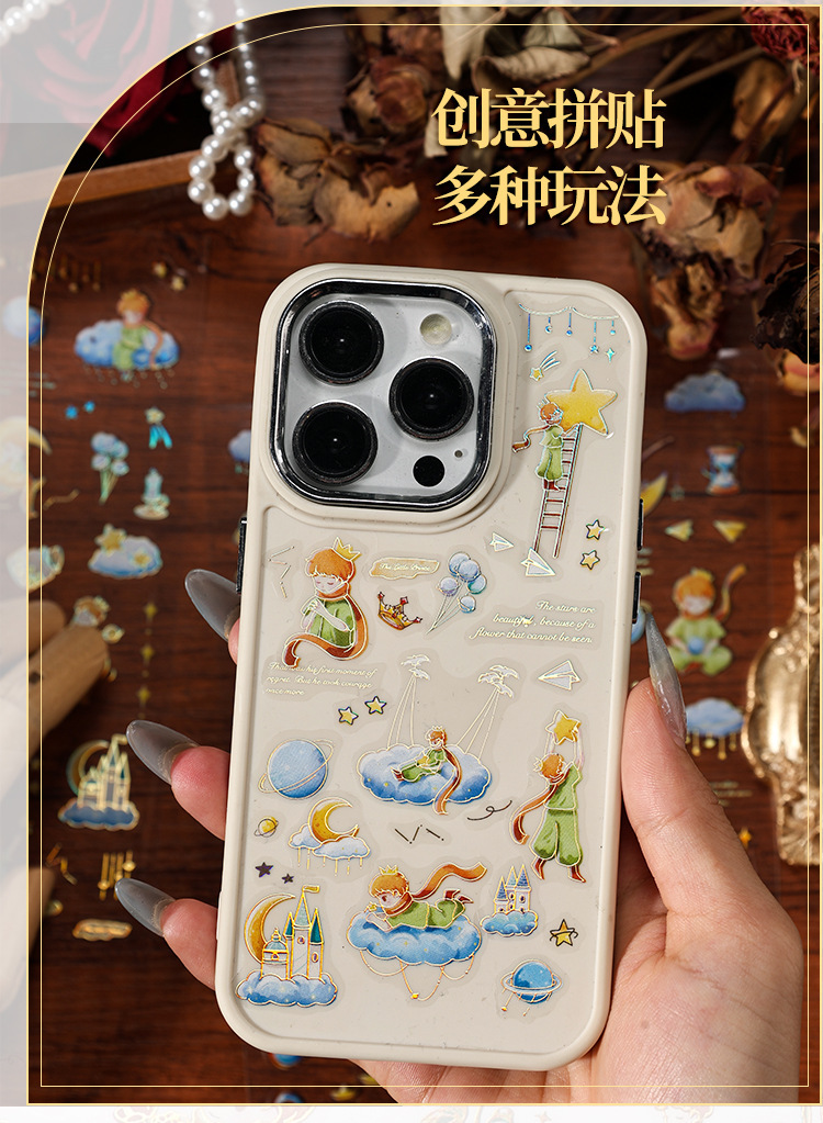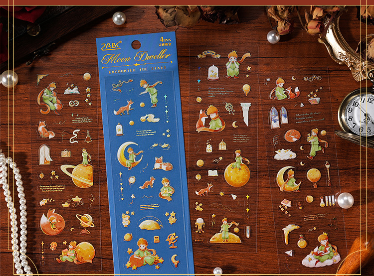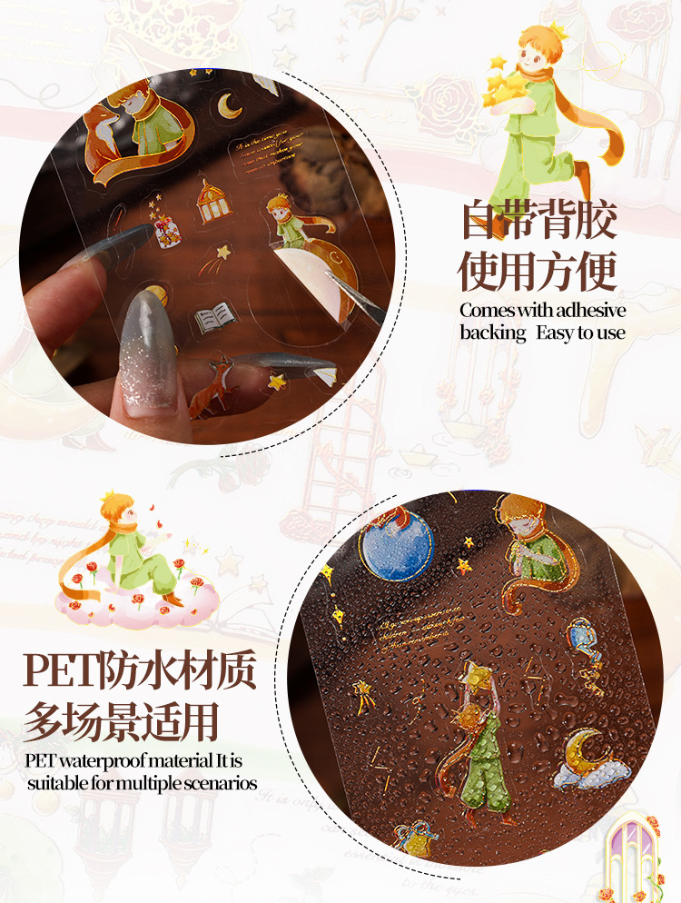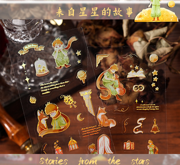 星の王子さま 箔押しPETリラックス透明ステッカー ハンドブックデコレーション 日記 クリエイティブ星空 カラフル立体DIYステッカー