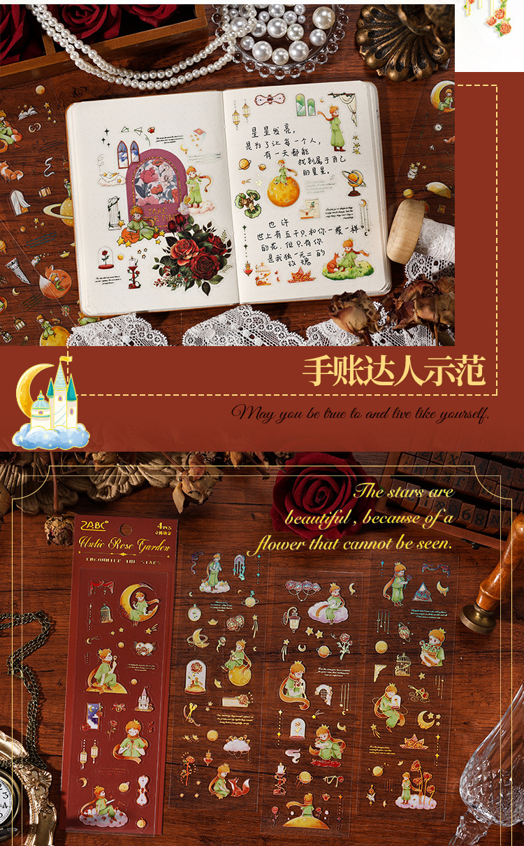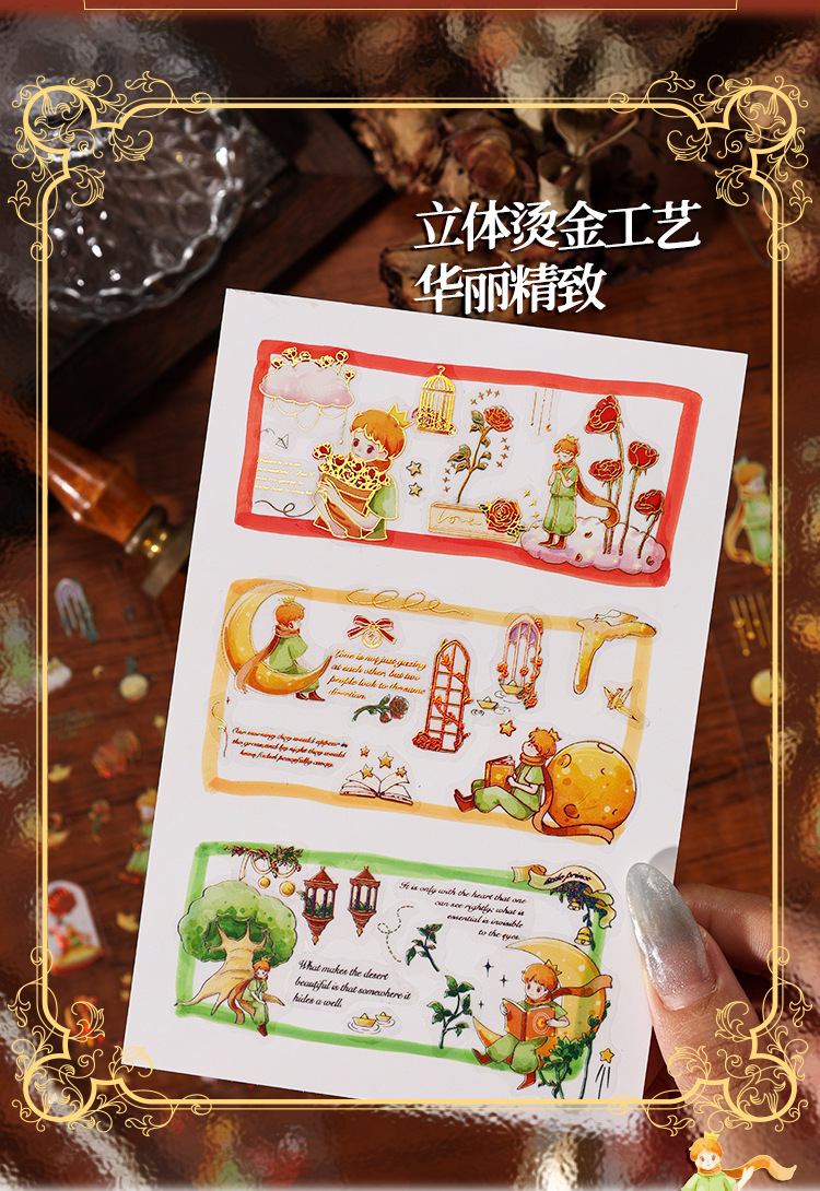 小王子バラ星夢立体箔押し手帳シールdiyグーカード防水pvcかわいい装飾素材シール