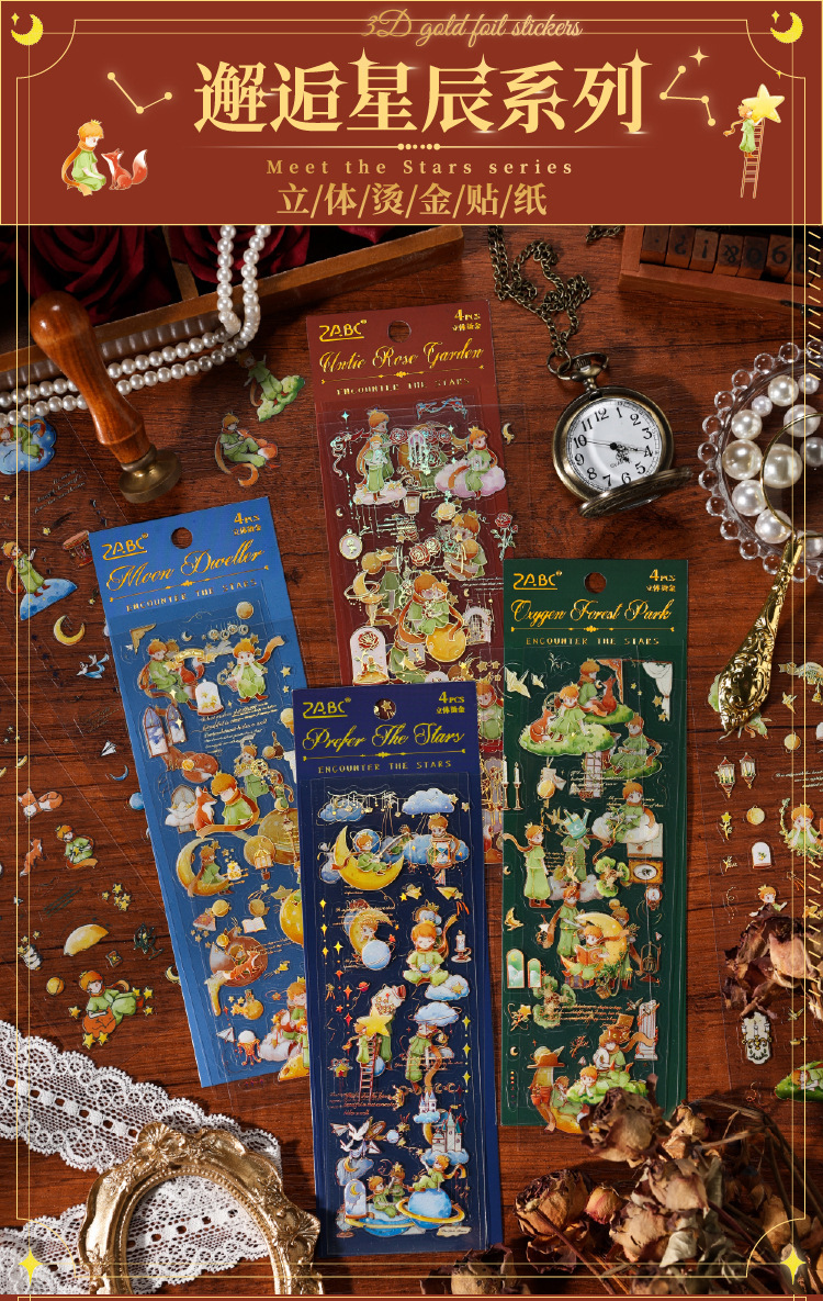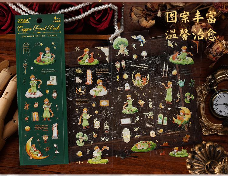ネット紅小王子星夢pvc立体箔押し手帳シールカード装飾レトロdiy手帳素材貼り絵