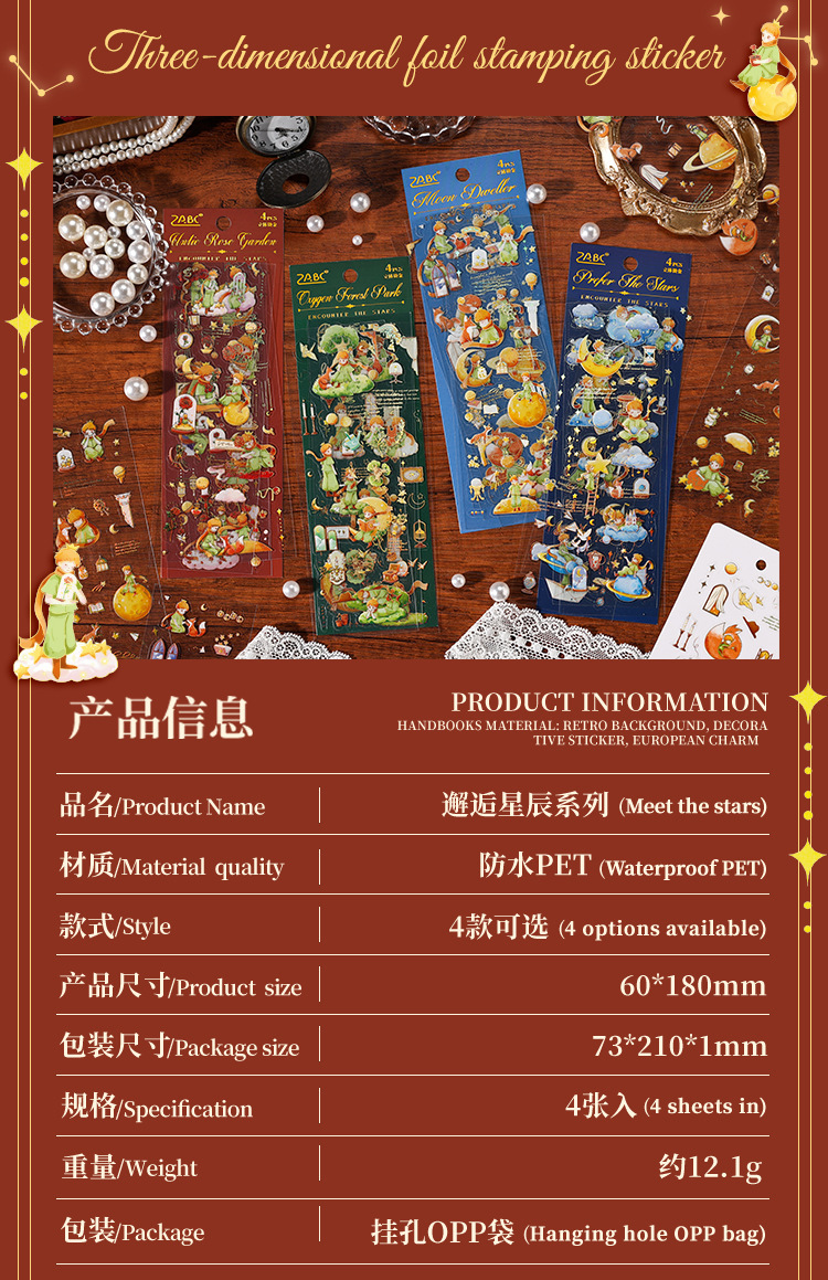 悦真出会い星立体箔押し手帳シールクロスボーダー児童シール漫画シールpet手帳素材