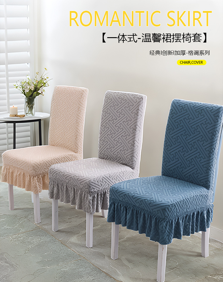 新しいスカート型チェアカバー、家庭用ダイニングチェアカバー、ジャカード織りクッションカバー、椅子カバー、汎用伸縮性スツールカバー