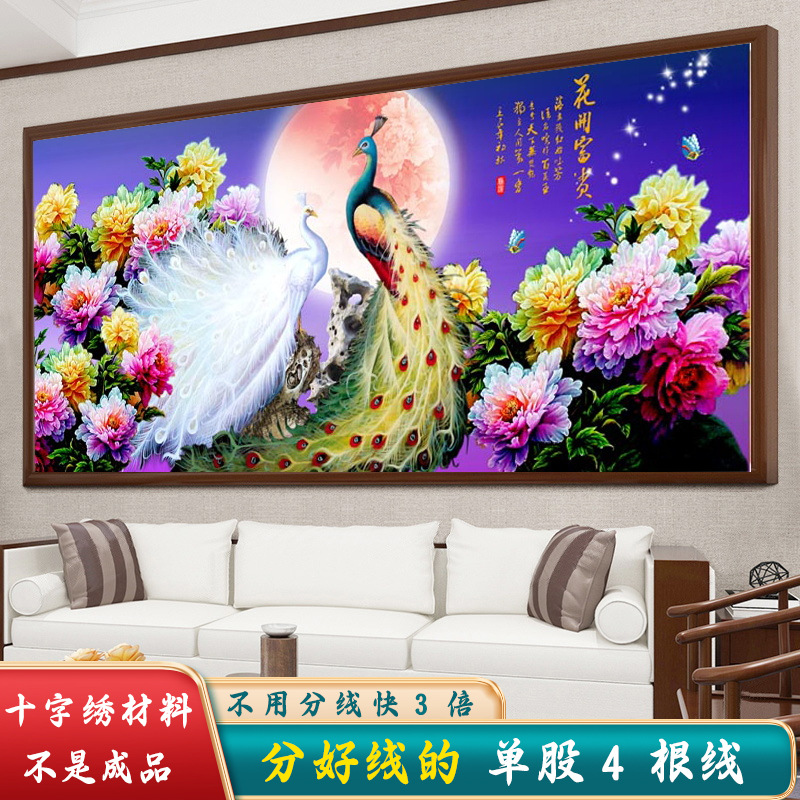 材料の非完成品は良い線の花が咲いて富貴な十字の刺繍の2024年の新型の線の刺繍の客間の孔雀の花卉の大幅な