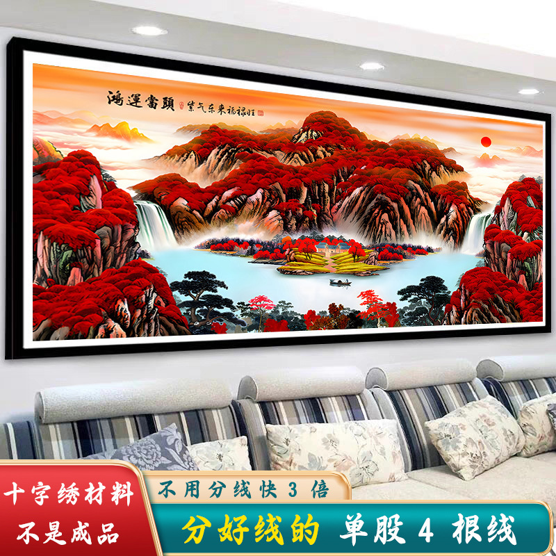 糸を分けたもの - ラッキーヘッドクロスステッチ 2025 新しい糸刺繍リビングルーム自己刺繍シンプルな流水と富の風景